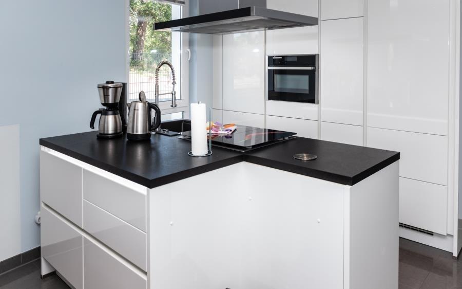 Die Küche ist hochwertig ausgestattet und durch das Lichtkonzept sehr harmonisch gestaltet.