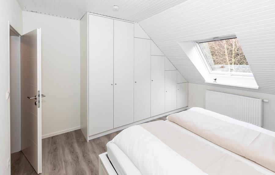 Die Wohnung verfügt über zwei separate Schlafbereiche, beide mit passgenauen Einbaukleiderschränken ausgestattet.