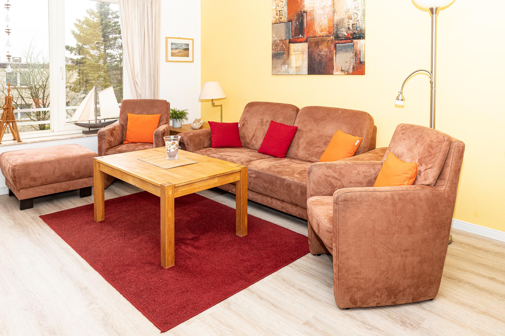Duhnen, Rugenbargsweg 68. In diesem gemütlichen und schön gelegenen 3-Raum Ferienquartier erwarten Sie helle Räume für bis zu 4 Personen. Die Ferienwohnung ist komplett mit Laminat ausgestattet und daher Allergiker freundlich. Der Wohn- und Essbereich ist ausgestattet mit einem großen Esstisch und einem Wohnbereich mit Couch und 2 Sesseln. Der Zugang zum Westbalkon mit schönem Blick erfolgt vom Wohnzimmer. Die beider Schlafzimmer sind einmal mit einem Doppelbett und einmal mit 2 Einzelbetten eingerichtet. Beide haben einen Kleiderschrank, so dass auch für die längere Reisezeit für Platz gesorgt ist. Die neue Einbauküche mit Geschirrspüler befindet sich im großen Eingangsbereich der Wohnung. Das moderne Duschbad mit fast bodentiefer Dusche, Fußbodenheizung, Handtuchheizkörper, ein großer Spiegelschrank und WC mit Tageslicht. Im Haus befindet sich noch eine gemeinschaftlich genutzte, gebührenpflichtige Sauna mit Ruheraum. Ein Garten, der über einen seitlichen Zuweg am Haus erreicht wird, kann von Ihnen mit genutzt werden.