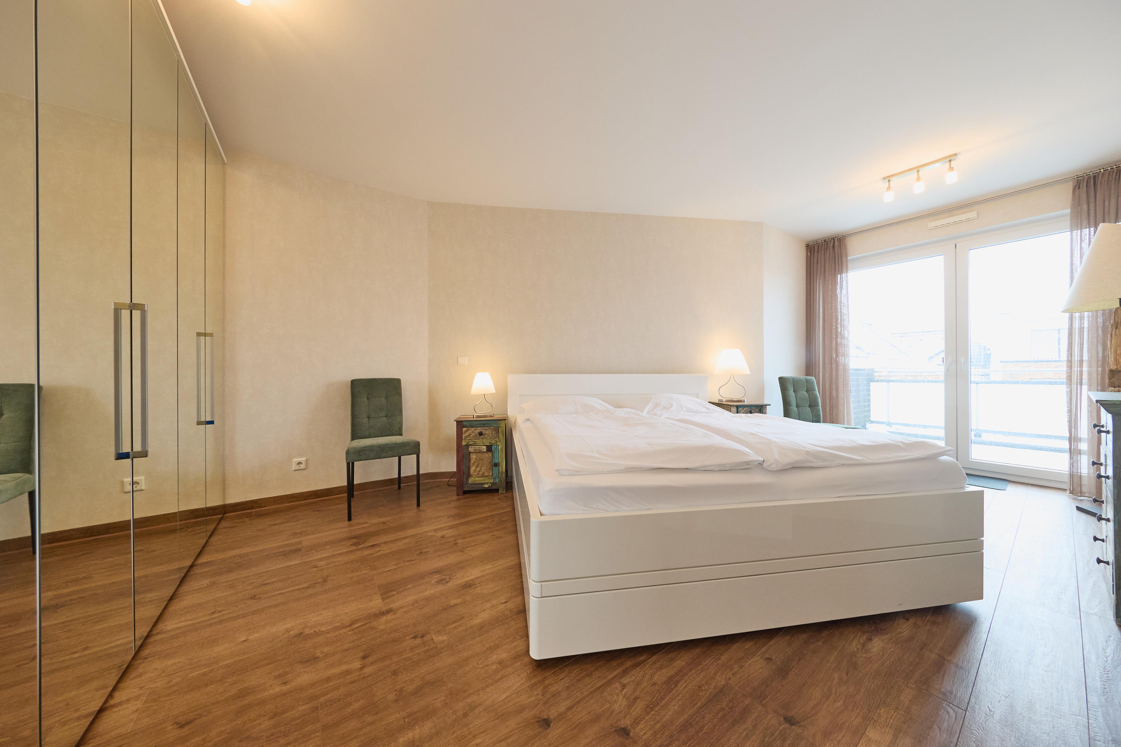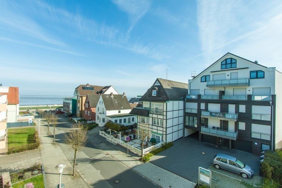 Willkommen in der Ferienwohnung "Nordico" in Duhnen, Nordstraße 8a, Wohnung 8. Diese elegante 3-Zimmer-Wohnung bietet Ihnen auf ca. 80 m² Platz für bis zu 4 Personen und begeistert mit einem traumhaften Meerblick, zwei Balkonen, einem Fahrstuhl sowie einem PKW-Außenstellplatz und einer Garage.
