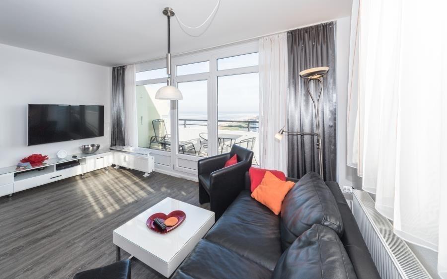 Schon beim Betreten wird deutlich, was dieses Appartement besonders macht: viel Licht, klare Linien und ein offenes Raumgefühl. Der grandiose Ausblick auf Strand, Nordsee und die Weltschifffahrtswege begleitet Sie durch den gesamten Tag. Bei guten Wetterverhältnissen reicht der Blick weit bis nach Schleswig-Holstein.