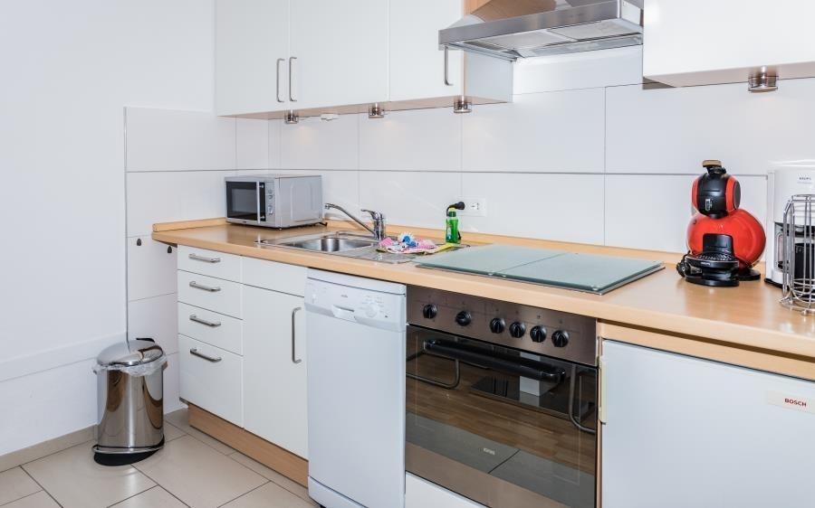 Die komplett eingerichtete Küchenzeile ermöglicht eine unkomplizierte Selbstverpflegung im Urlaub. Hier finden Sie alles, was Sie benötigen – inklusive Geschirrspüler. Wer es besonders bequem mag, holt die Frühstücksbrötchen einfach mit dem Aufzug direkt aus der Bäckerei im Erdgeschoss. Alternativ stehen Ihnen mehrere Restaurants im Haus zur Auswahl.
