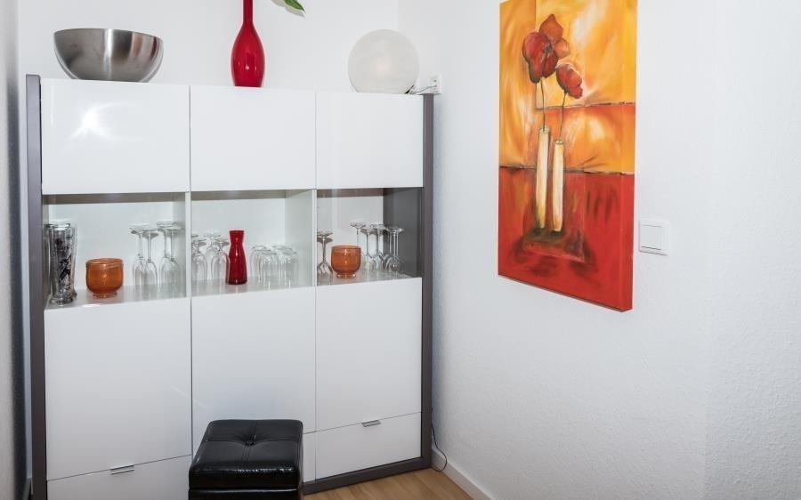 Ein sehr geräumiger Kleiderschrank bietet ausreichend Platz für Ihre Urlaubsgarderobe. Die klare Raumaufteilung und das ruhige Wohnumfeld sorgen für erholsame Nächte und einen angenehmen Aufenthalt.