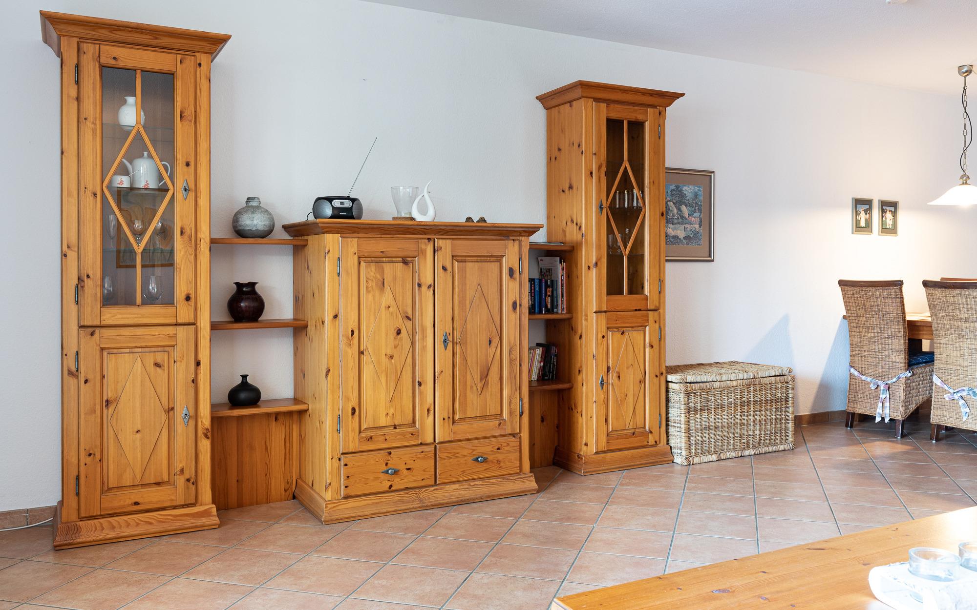 Im separaten Schlafzimmer stehen zwei Einzelbetten (je 90 × 200 cm) zur Verfügung, die eine angenehme Schlafumgebung bieten. Zusätzlich befindet sich im kombinierten Wohn- und Schlafbereich ein Schlafsofa (Liegefläche ca. 160 × 200 cm), das sich für zwei weitere Personen eignet. So ist die Wohnung sowohl für Paare als auch für kleine Familien oder Freunde gut nutzbar.