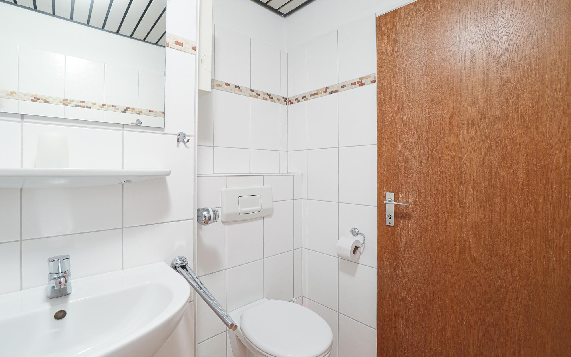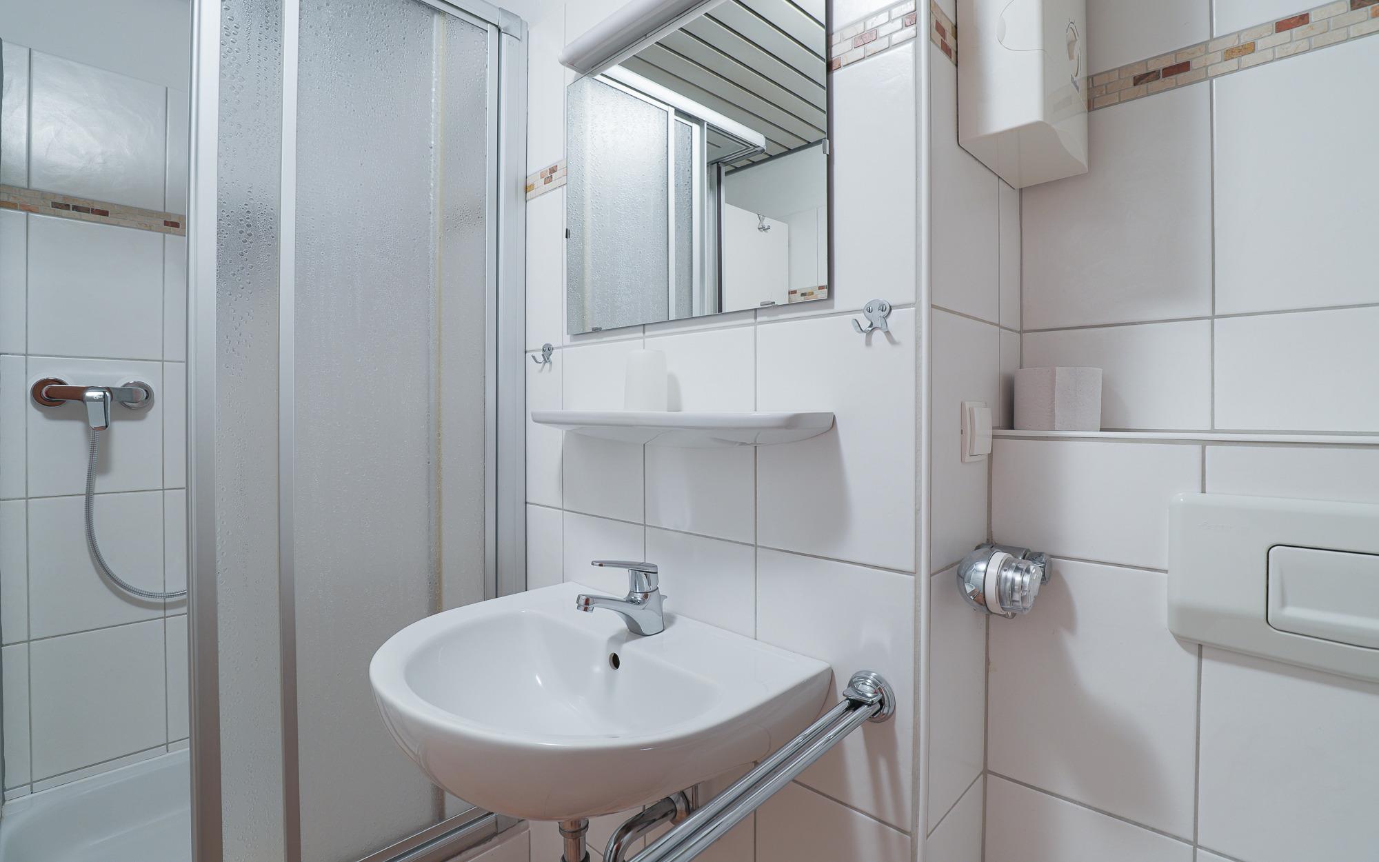 Das Badezimmer ist funktional ausgestattet und verfügt über Dusche und WC. Alles ist auf einen angenehmen und unkomplizierten Aufenthalt ausgelegt.