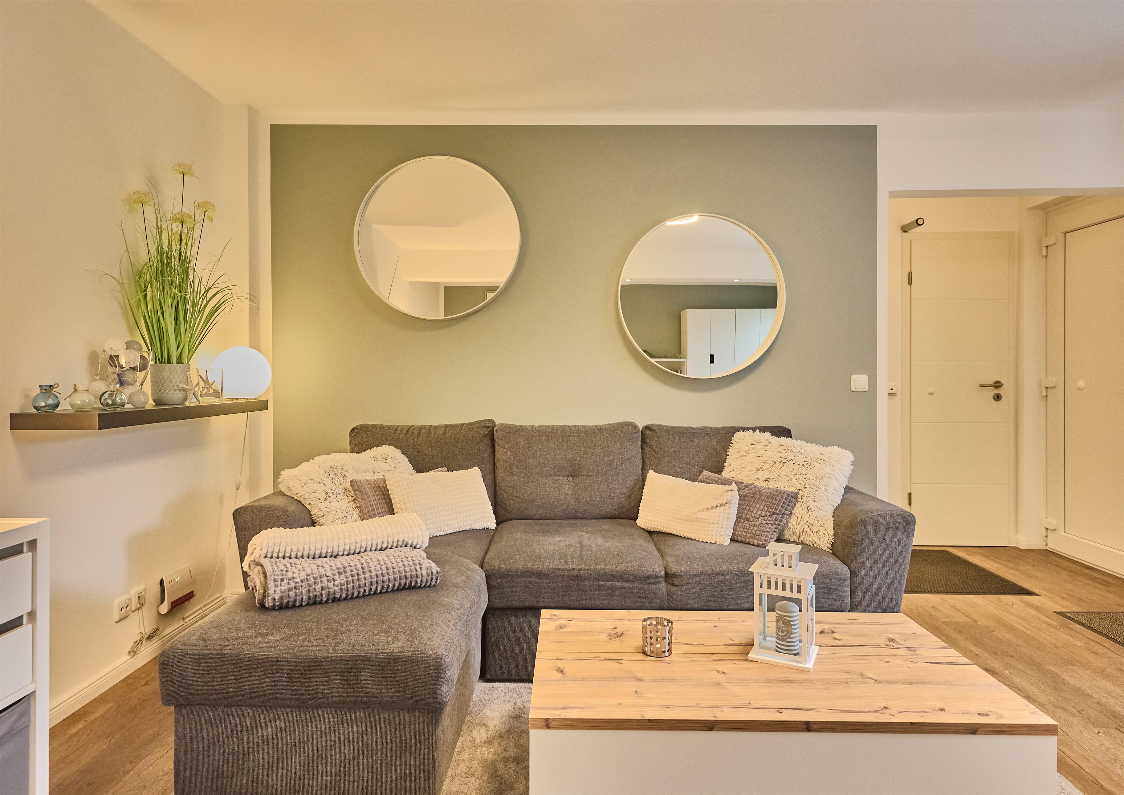 Pier 12 - Ferienwohnung Nr. 6 befindet sich in der ebenerdigen Erweiterung des Haupthauses. Die Wohnung ist für max. 2 Personen vorgesehen. Die Wohnung 6 bietet eine Suite mit einem Boxspring-Komfortdoppelbett und gemütlicher Sitzecke mit großer Couch. Vom Bett und/oder der Couch kann der Urlaubstag auch vor dem modernen LED Flat Screen TV ausklingen. Eine voll ausgestattete, separate, Küche mit Spülmaschine, Herd mit Cerankochfeld und Backofen, Mikrowelle, Toaster, Kaffeemaschine, Wasserkocher und Geschirr steht zur Verfügung. In der Küche steht ein Essplatz zur Verfügung. Das Tageslichtbad hat eine Dusche und WC. Die Wohnung hat einen direkten Zugang zu einer eigenen schönen Terrasse mit Terrassenmöbeln und grenzt direkt an den großen und neu angelegten Garten.