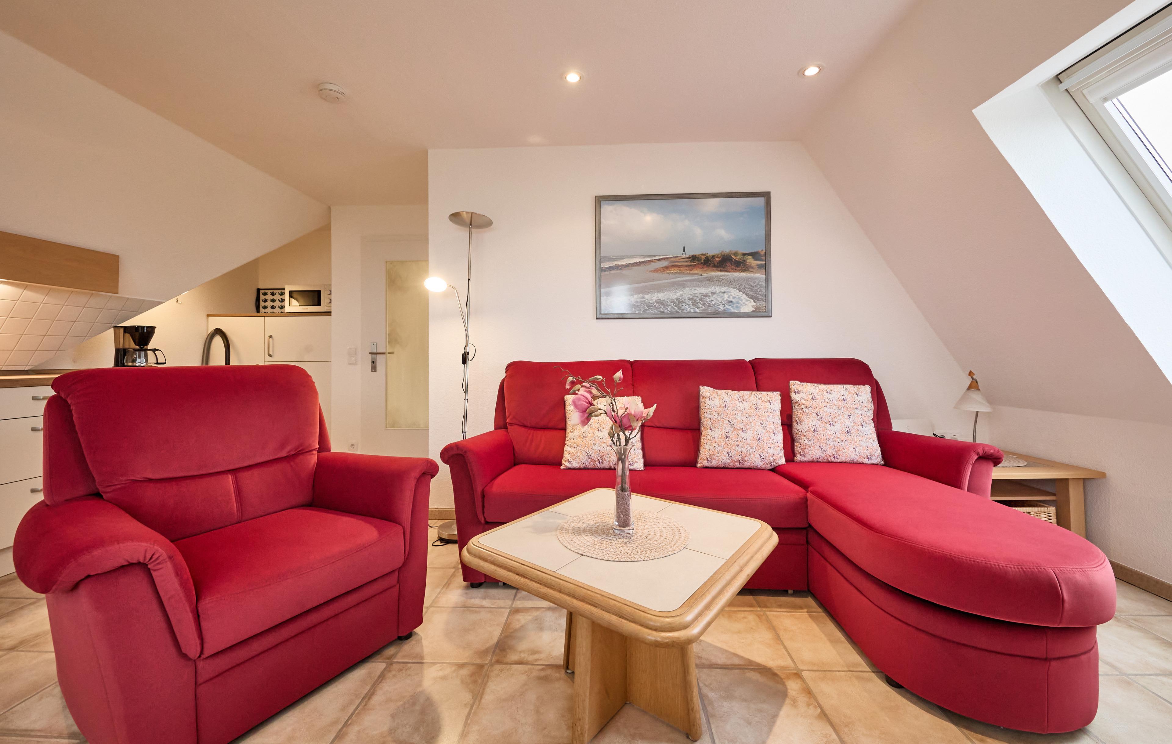 Robbenplate Duhnen - Bei dem Ferienquartier, FeWo 20 im 2.OG der Robbenplate handelt es sich um eine gemütlich eingerichtete 2-Raum Ferienwohnung bestehend aus einem Wohn- (mit Flachbild-TV) und Essbereich, ausgestattet mit einer Einbauküche und der unverbauten Seesicht vom Essbereich. Ein zusätzliches Dachfenster macht diese Wohnung schön hell und bietet gefühlsmäßig einfach mehr Seesicht. Einfach schön.