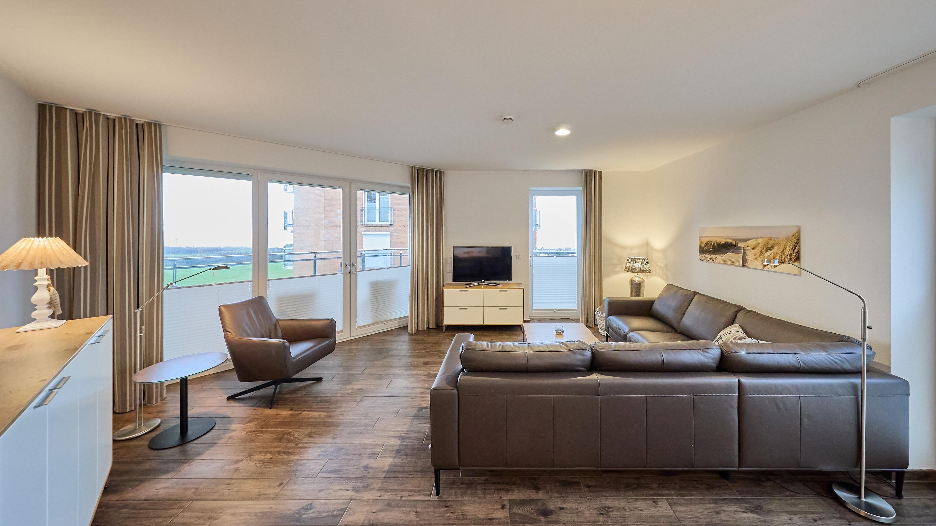Hochwertig mit Seeblick – Strandpalais Duhnen Haus 2 / Eingang C / FeWo C12, Wehrbergsweg 32c, 3-Raum, 1. Obergeschoss, bis zu 4 Personen, Blick auf Neuwerk und die Nordsee