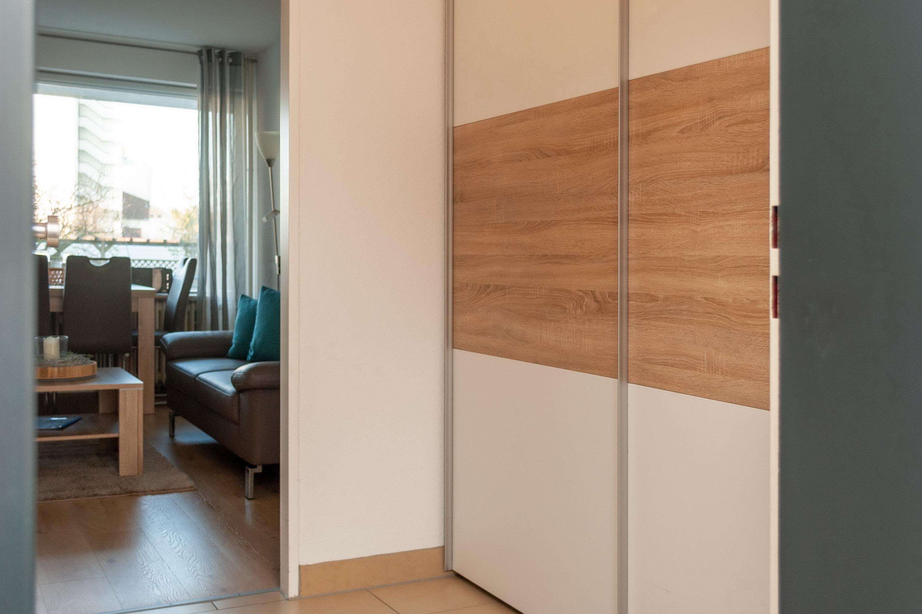 Das Apartment besteht aus einem Schlafzimmer mit 2 Einzelbetten, einem Wohnbereich mit zusätzlichem Schrankbett für 2 Personen und einem Badezimmer mit Dusche sowie WC. Die Ferienwohnung beinhaltet eine voll ausgestattete offene Küche.