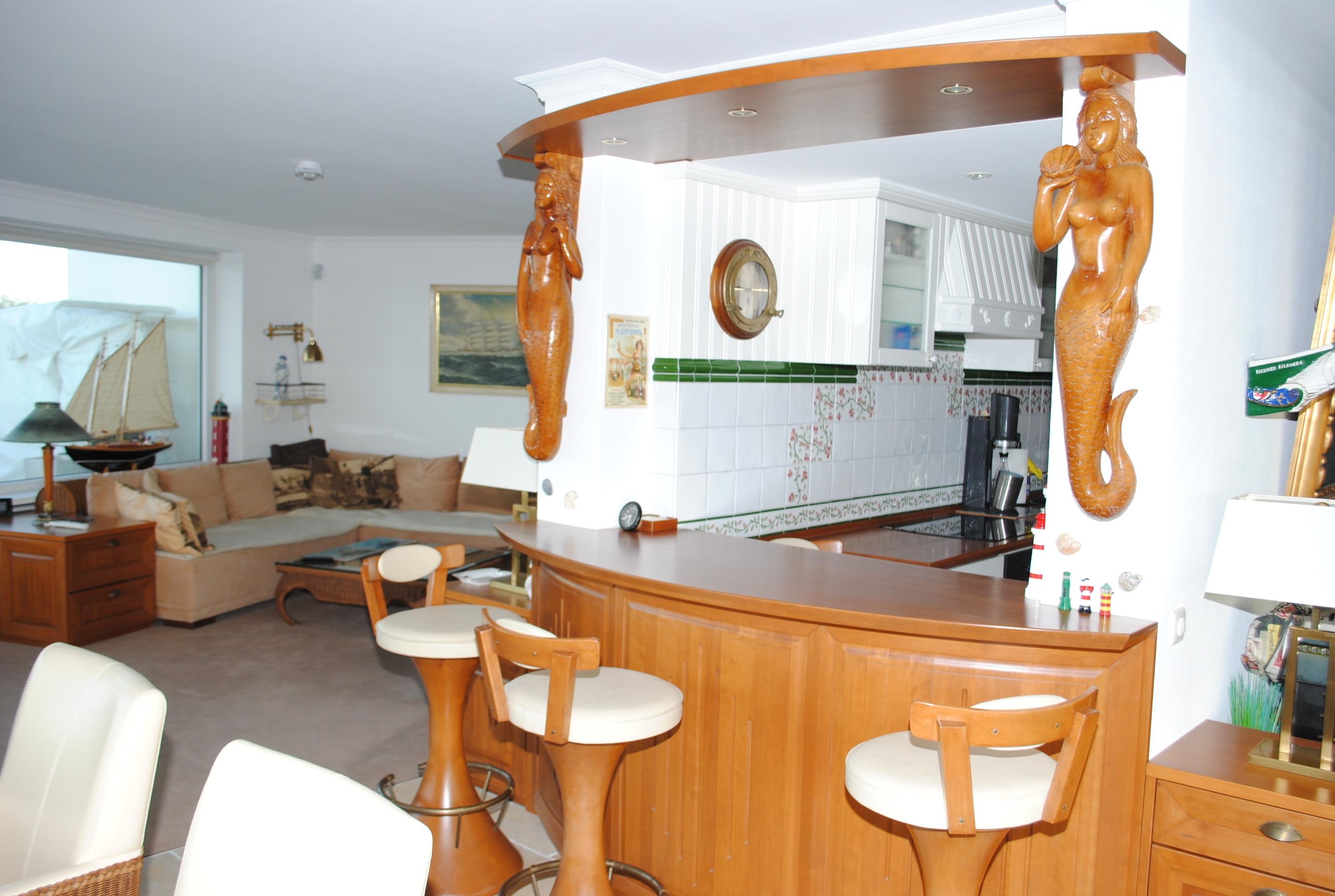 Das Apartment besteht aus einem Schlafzimmer mit 1 Doppelbett, einem Wohnbereich einem Badezimmer mit Dusche sowie WC. Die Ferienwohnung beinhaltet eine gut ausgestattete offene Küche.