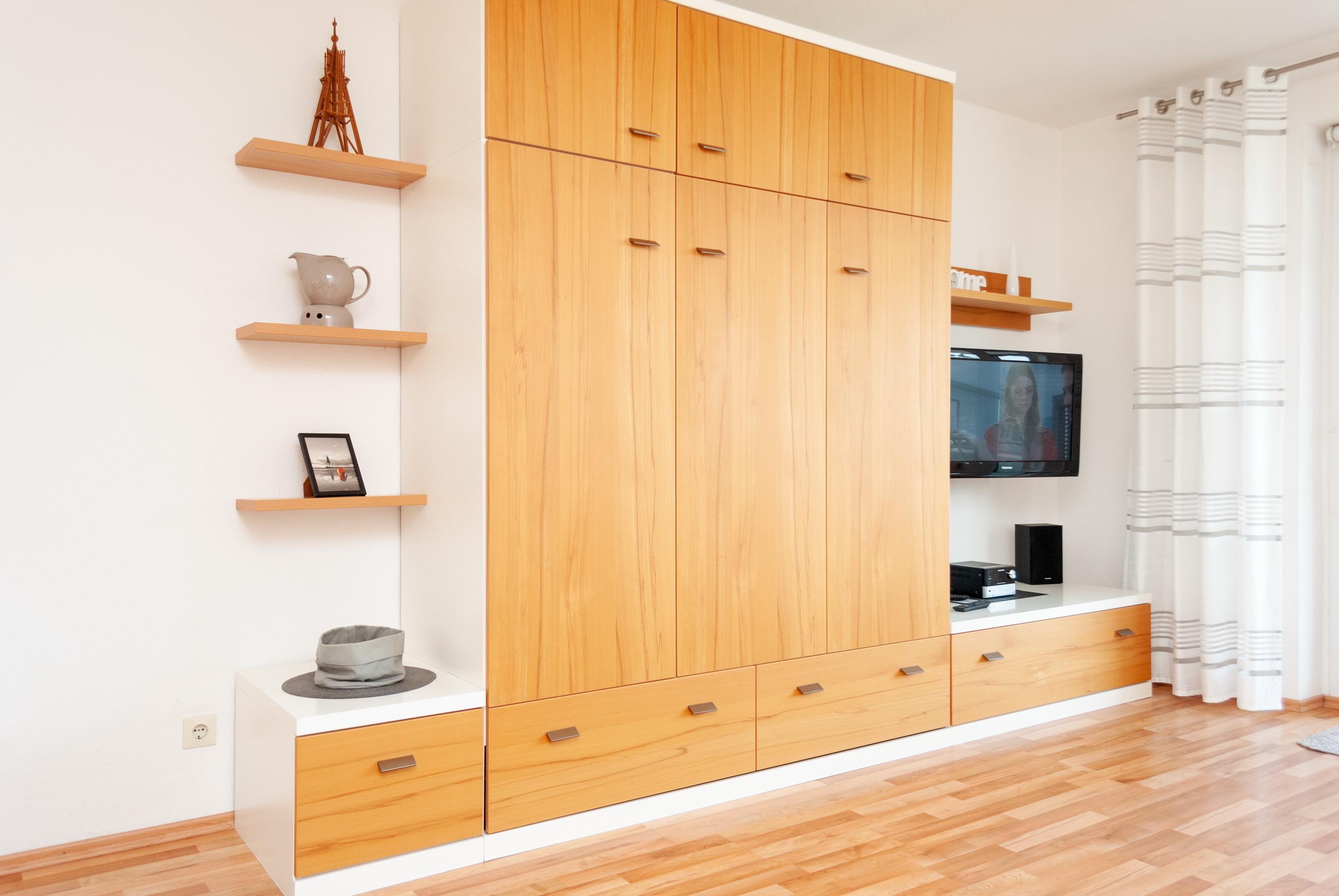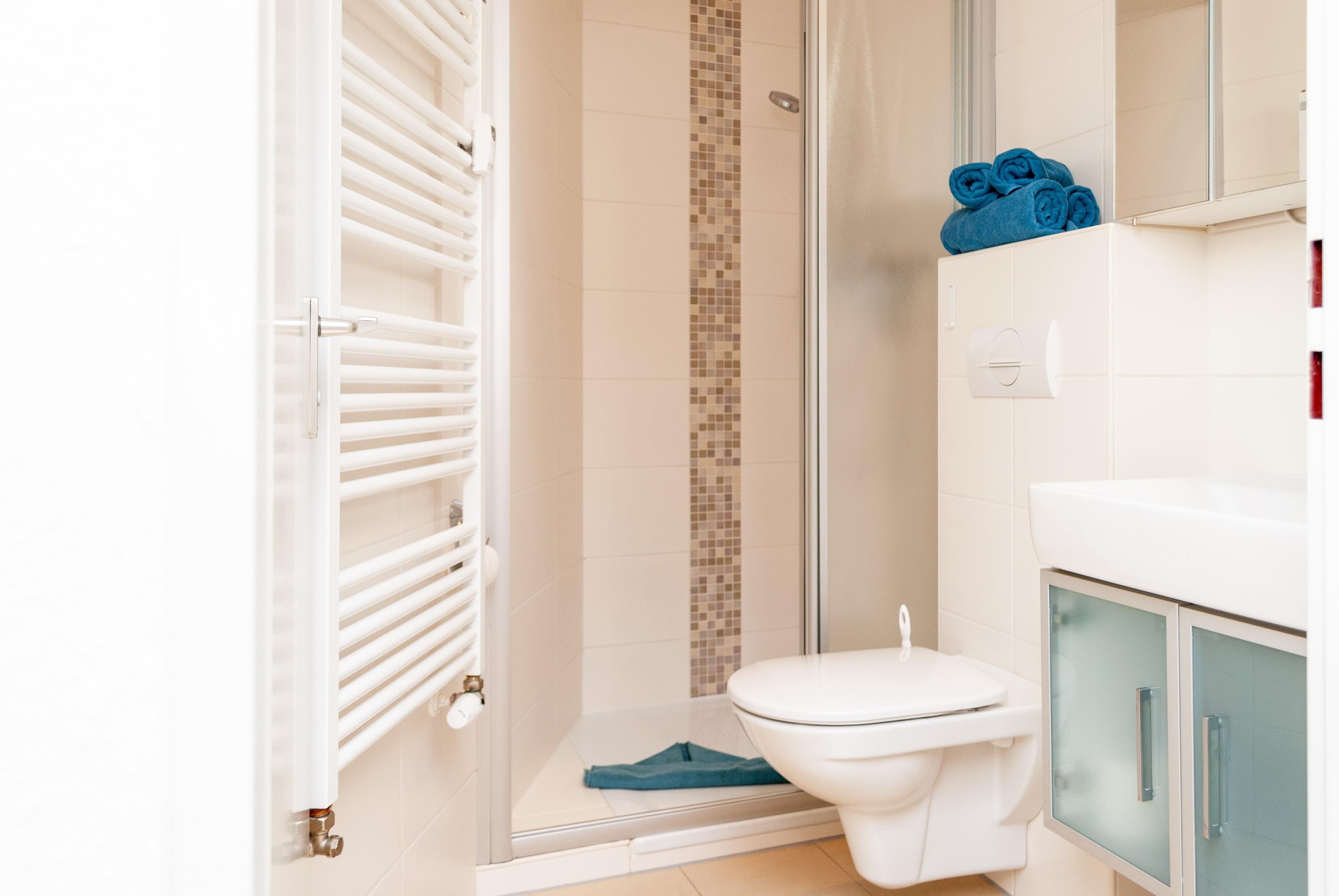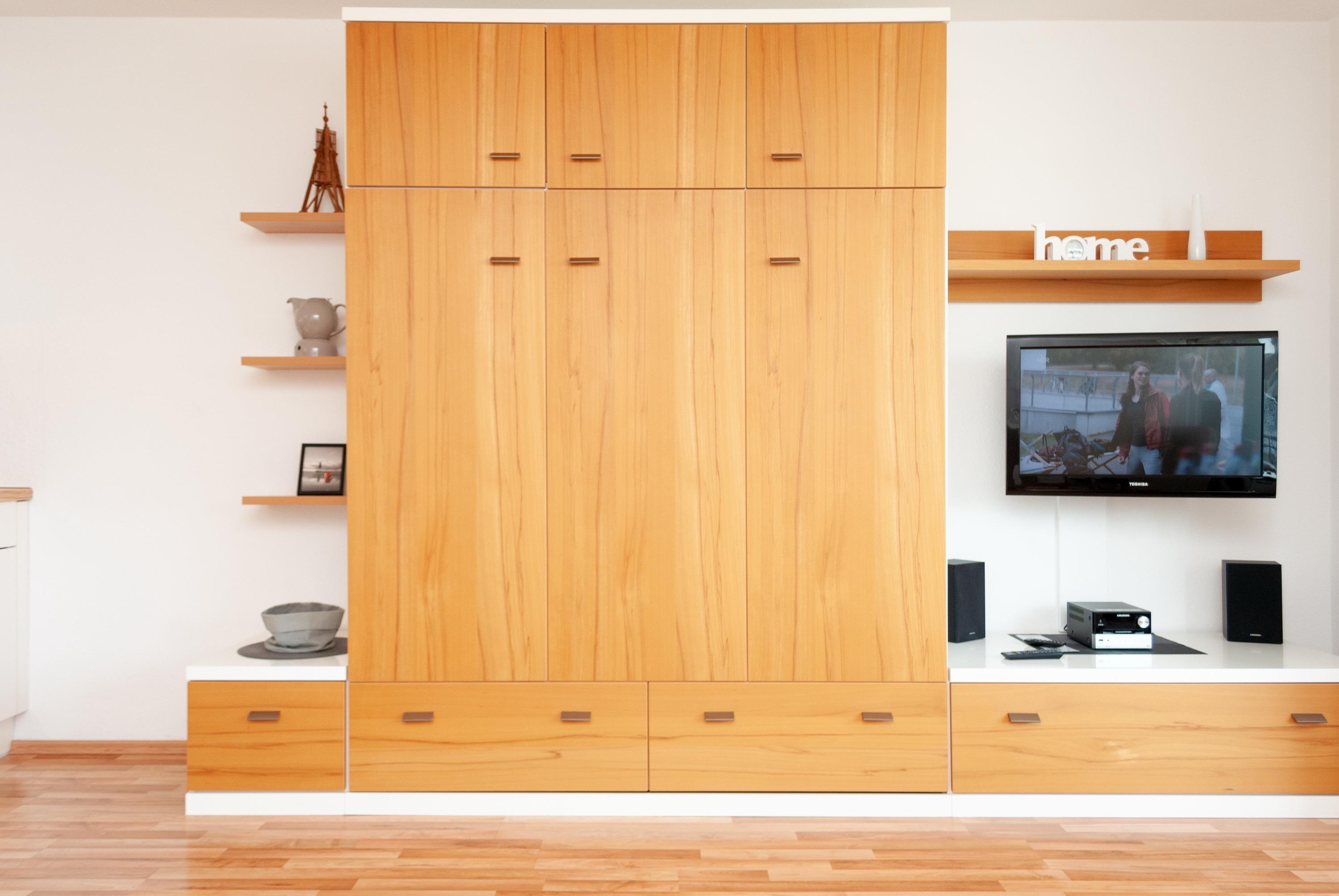 Das Apartment besteht aus einem Wohnbereich mit Schrankbett für 2 Personen, und aus einem zusätzlichem Etagenbett in einer Nische im Flur, einem Badezimmer mit Dusche sowie WC. Die Ferienwohnung beinhaltet eine voll ausgestattete offene Küche.