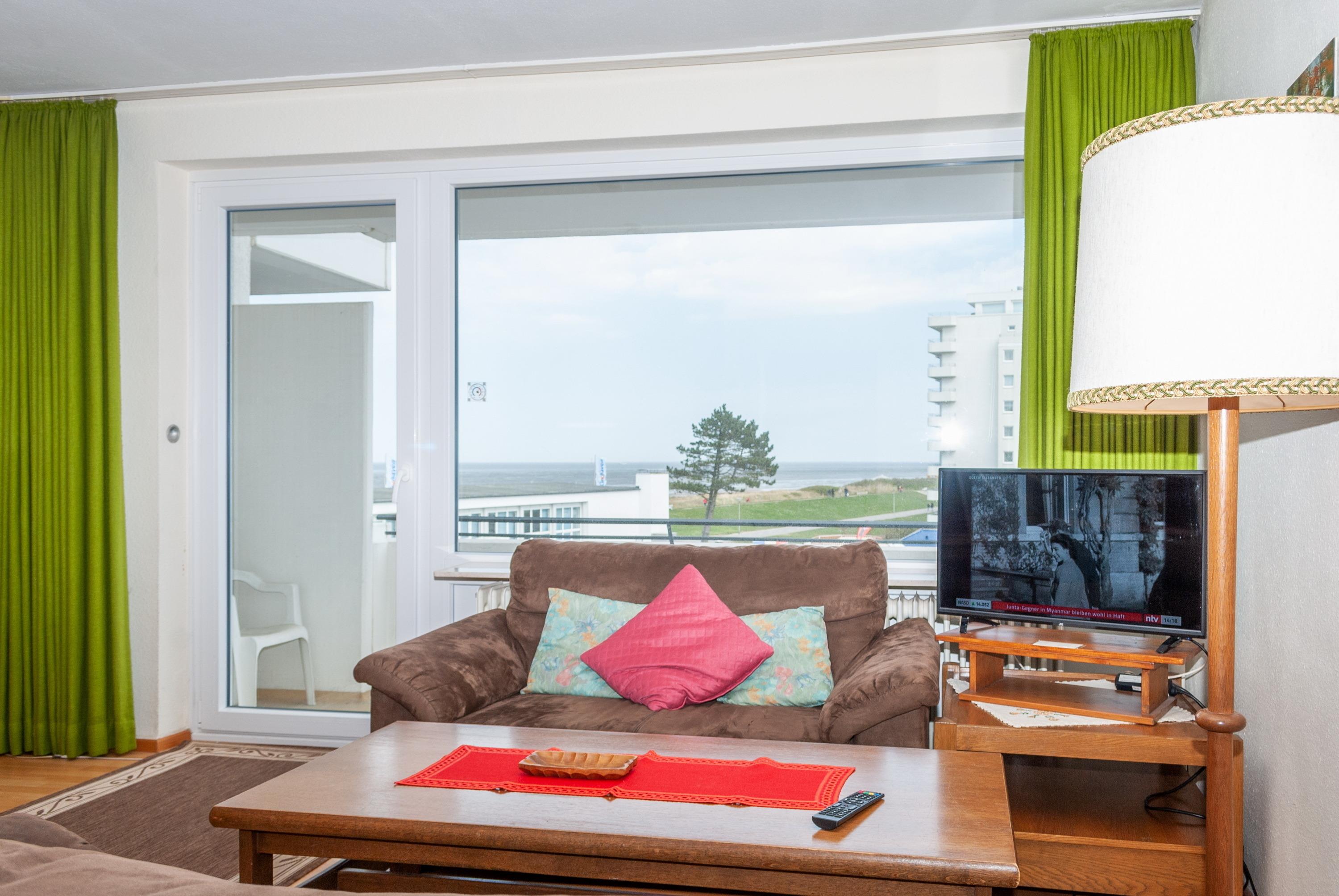 Das Apartment 312 ist ein 2-Raum-Apartment im 3. Obergeschoss für bis zu 4 Personen mit 50 qm. Der Ostbalkon mit Meerblick bietet Ihnen vormittags Sonne und nachmittags Schatten.