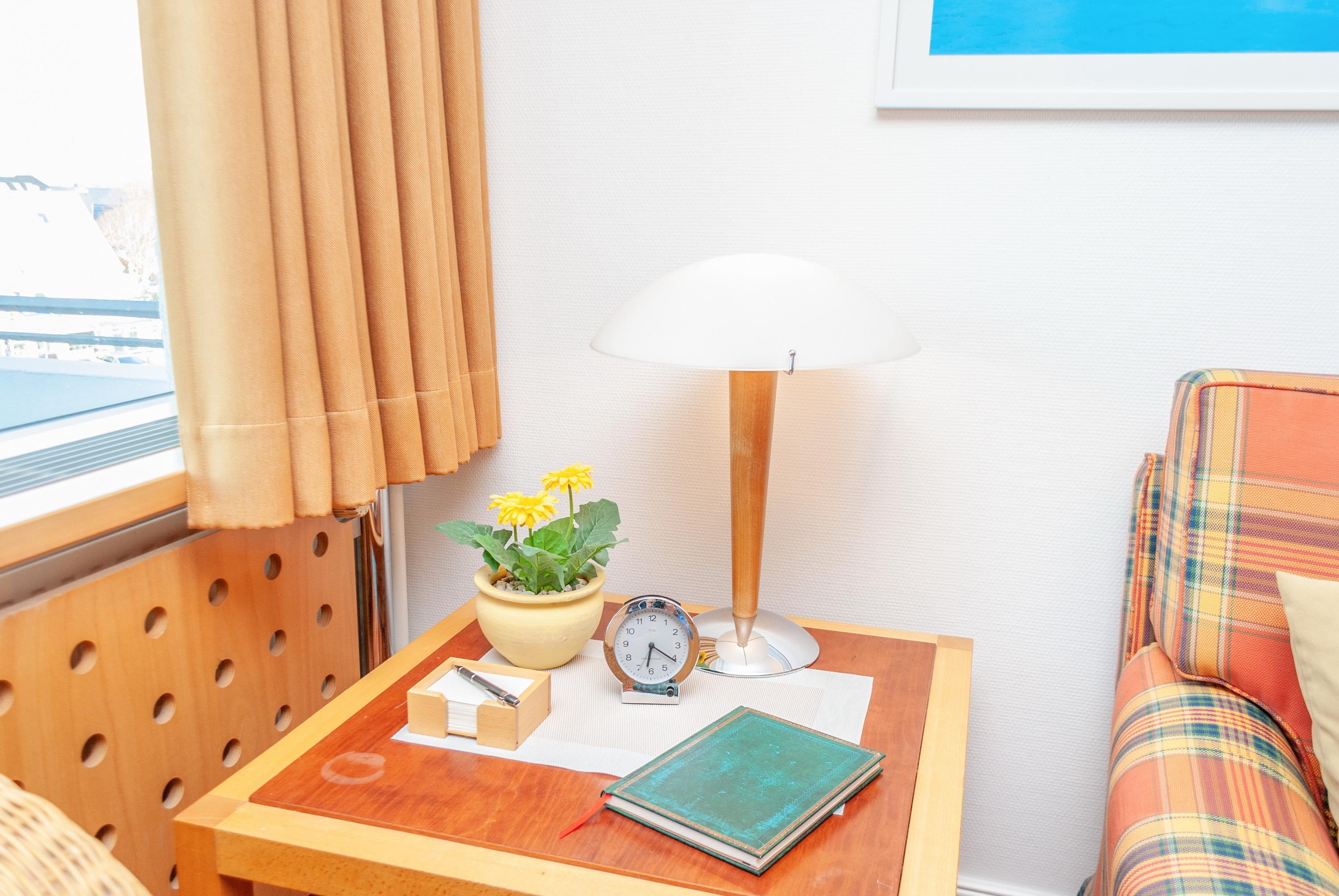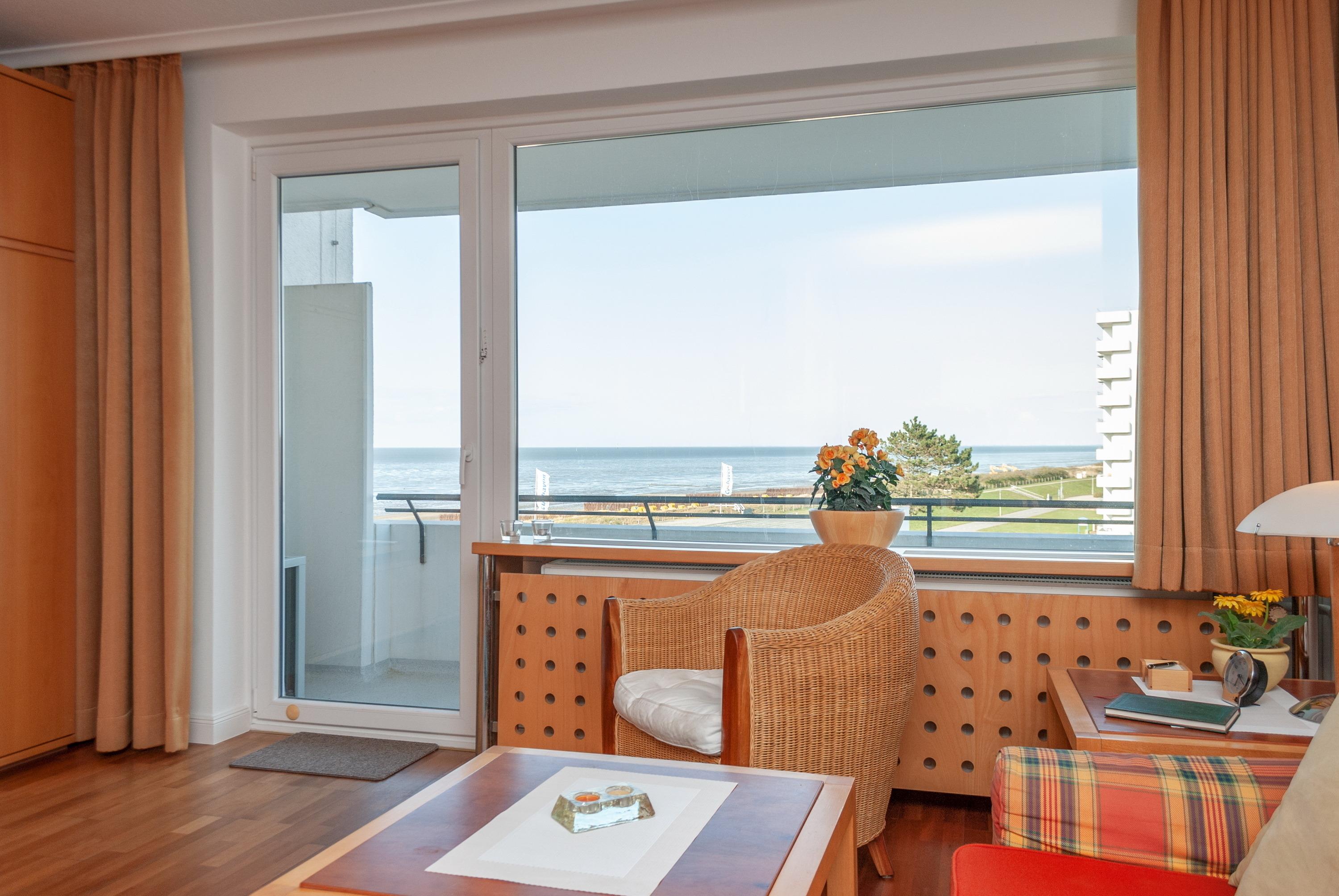 Das Apartment 409 ist ein 1-Raum-Apartment im 4. Obergeschoss für bis zu 3 Personen mit 40 qm. Der Ostbalkon mit Meerblick bietet Ihnen vormittags Sonne und nachmittags Schatten.
