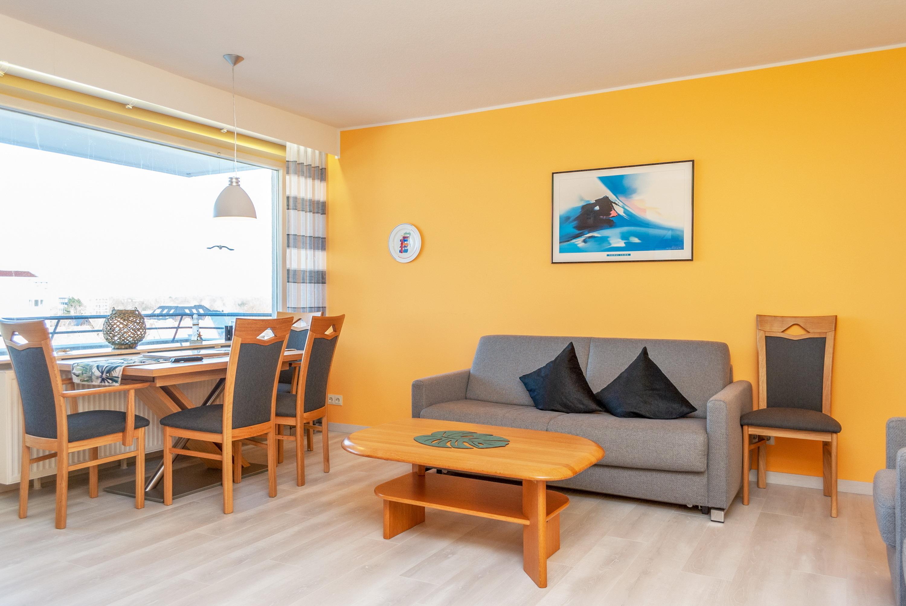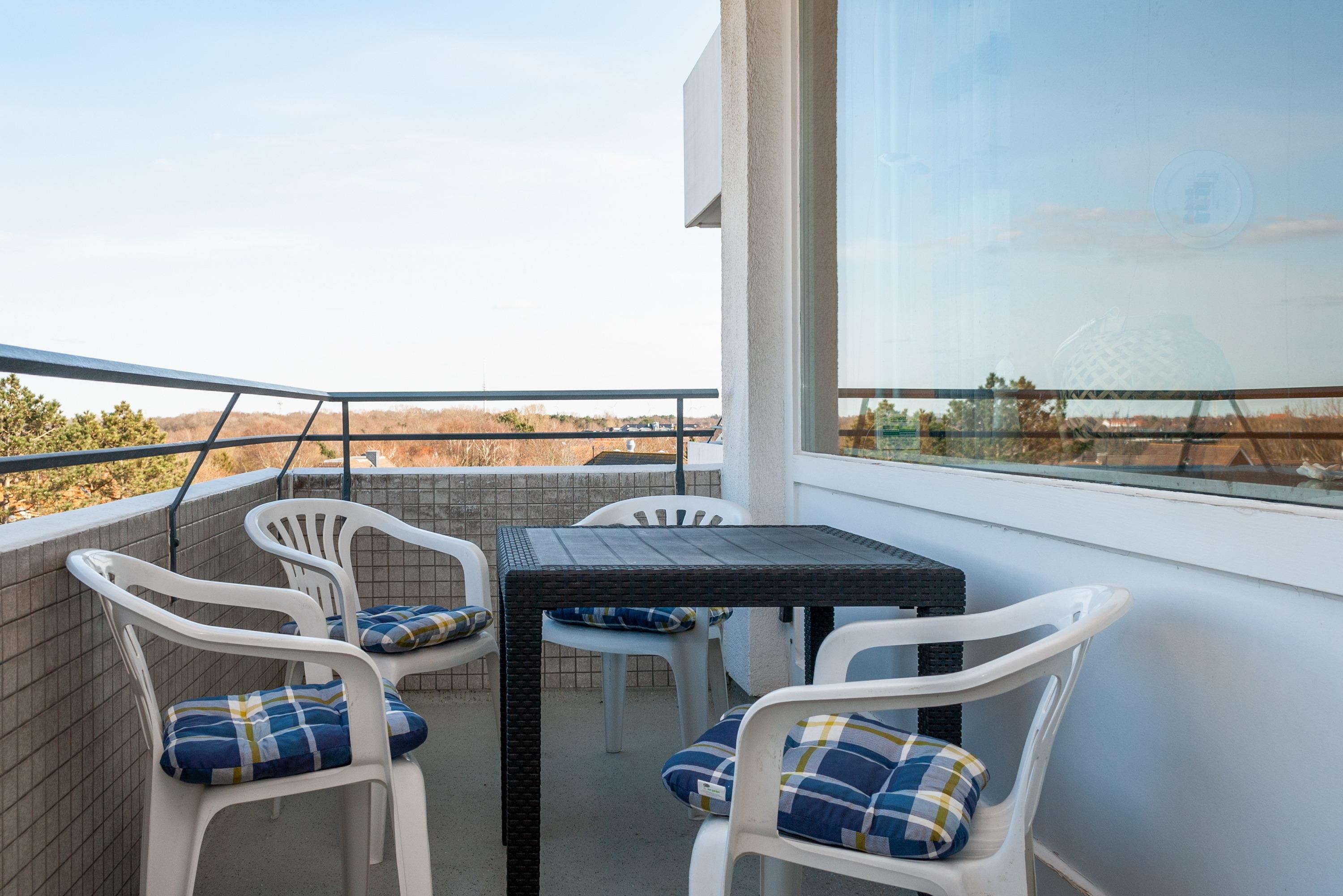 Das Apartment 509 ist ein 3 -Raum-Apartment im 5. Obergeschoss für bis zu 4 Personen mit 80 qm. Der Ostbalkon mit Meerblick bietet Ihnen vormittags Sonne und nachmittags Schatten.