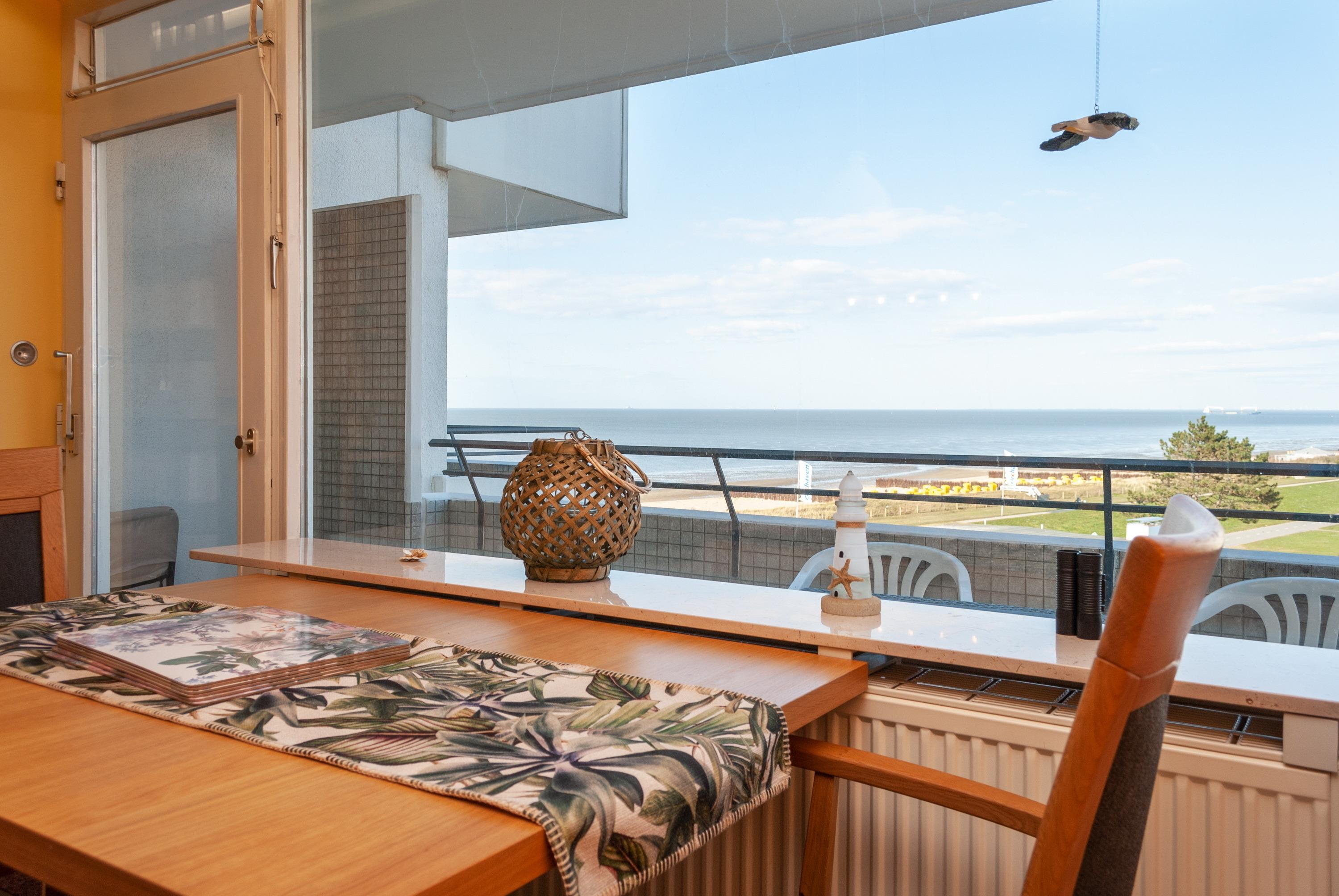 Modernes Apartment mit Meerblick, Balkon, Schwimmbad und Sauna in Duhnen, ideal für erholsame Tage an der Nordsee.
