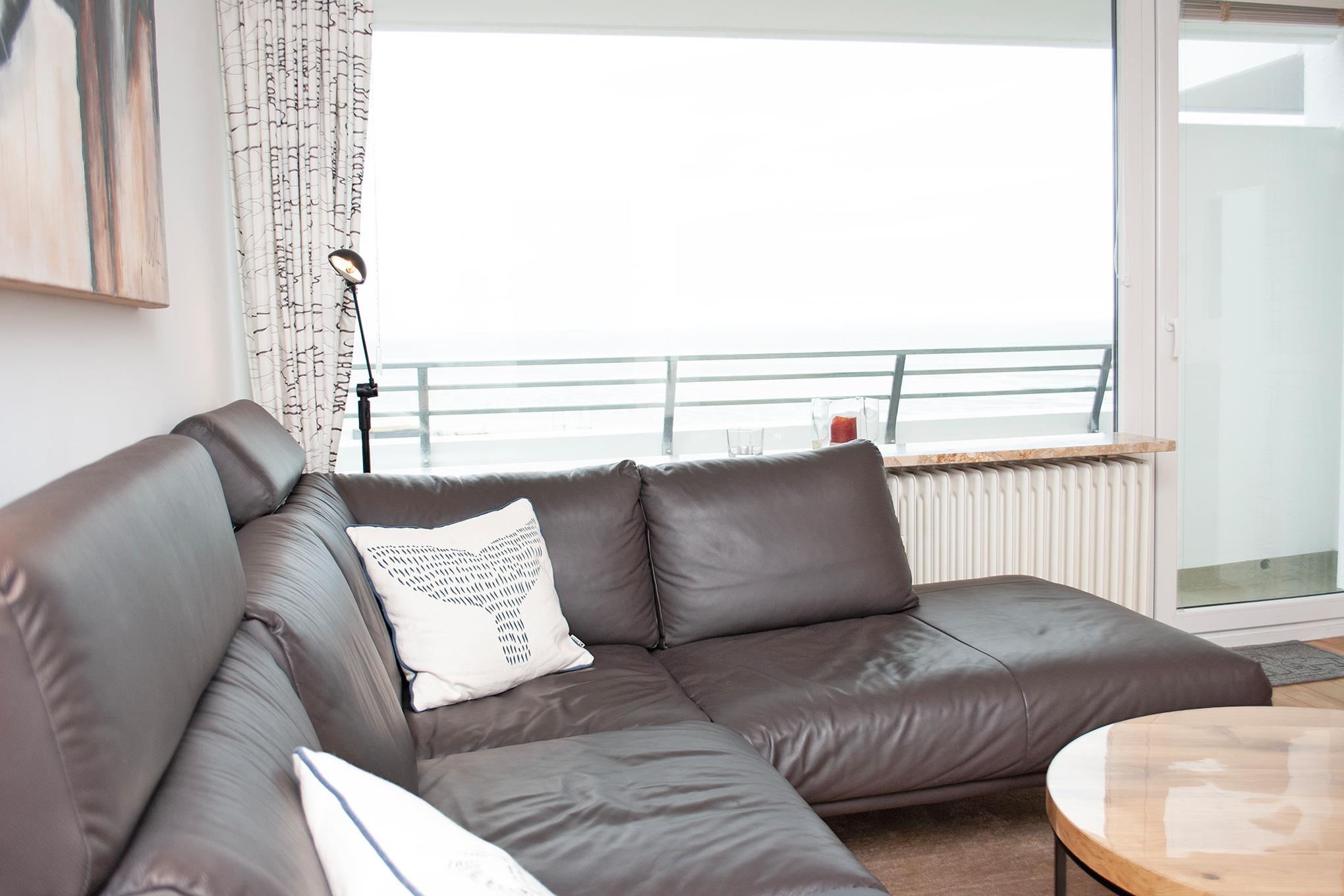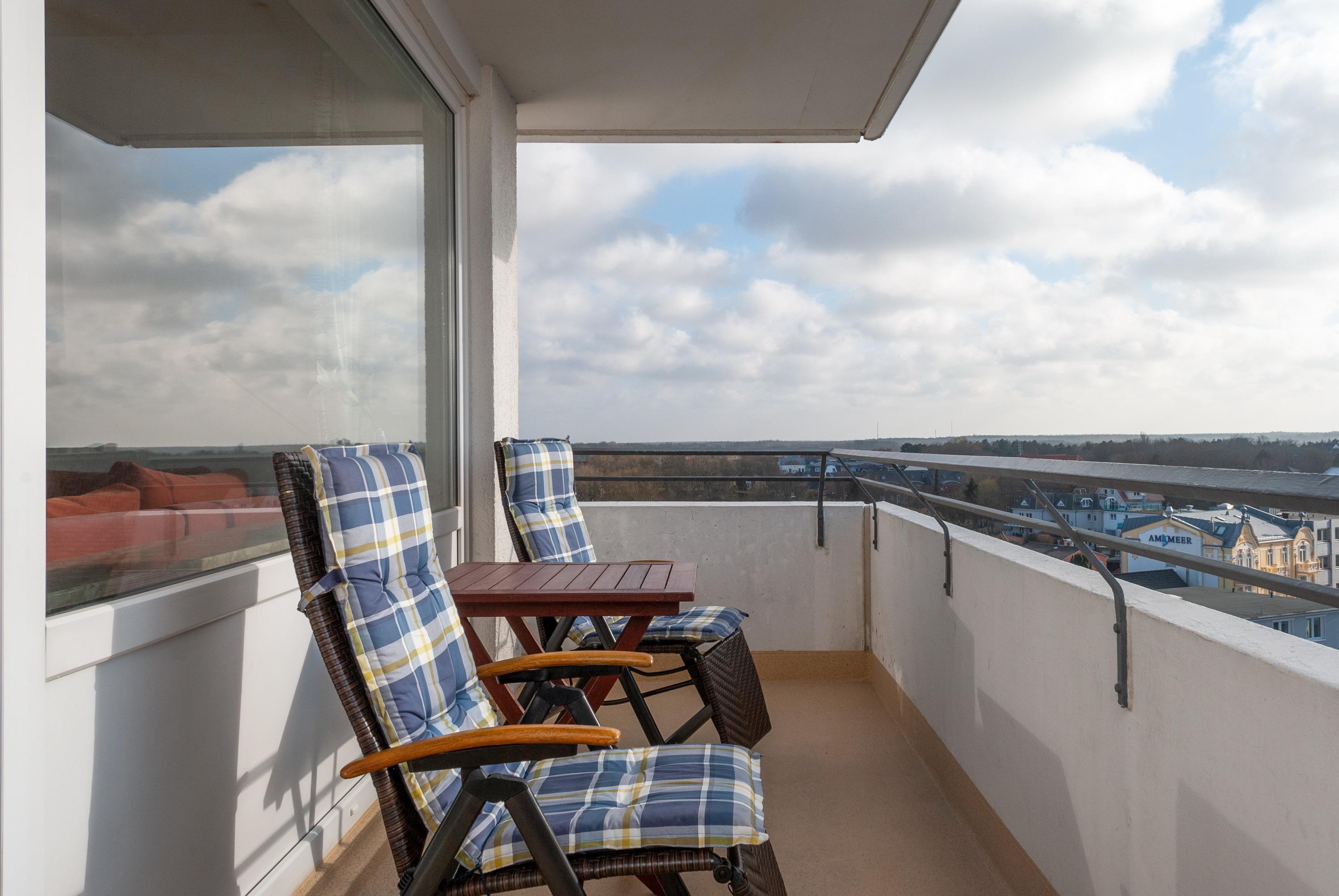 Das Apartment 801 ist ein 2-Raum-Apartment im 8. Obergeschoss für bis zu 3 Personen mit 50 qm. Der Westbalkon mit Meerblick bietet Ihnen vormittags Schatten und nachmittags Sonne.