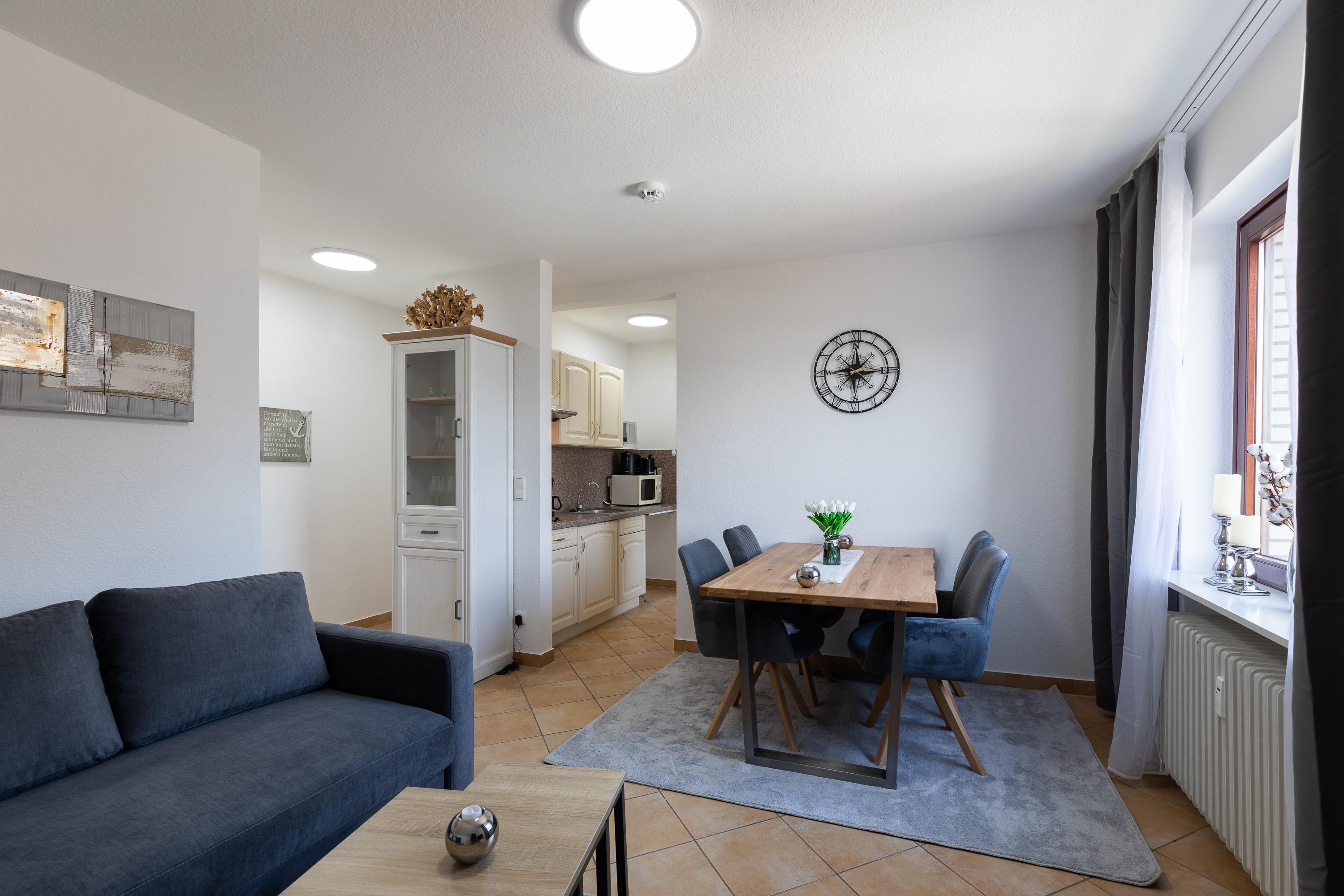 Die Ferienunterkunft "Anlage Leuchtfeuer, mit der Wohnung 3" in Duhnen bietet Platz für 4 Personen (Sofa kann als Schlafsofa genutzt werden) und befindet sich in der 1. Etage. Sie verfügt über ein gemütliches Schlafzimmer sowie ein Badezimmer mit Dusche, WC und einem Fenster. Die Ausstattung umfasst eine Mikrowelle, eine Kaffeemaschine und eine voll ausgestattete Küchenzeile. Zur Unterhaltung steht ein Flachbild-TV und WLAN Anschluss zur Verfügung. Die Ferienwohnung ist komplett rauchfrei und verfügt über einen eigenen PKW-Stellplatz.