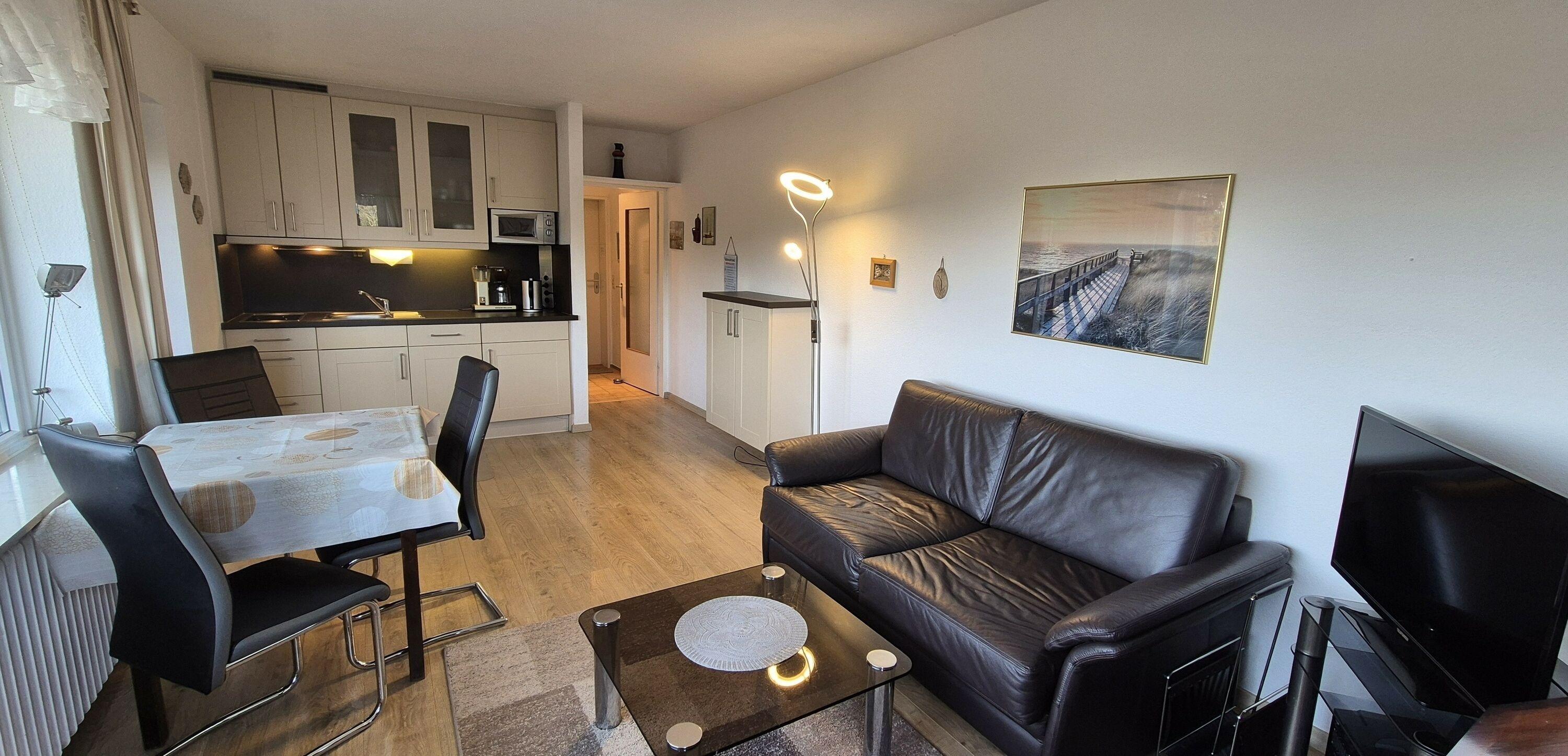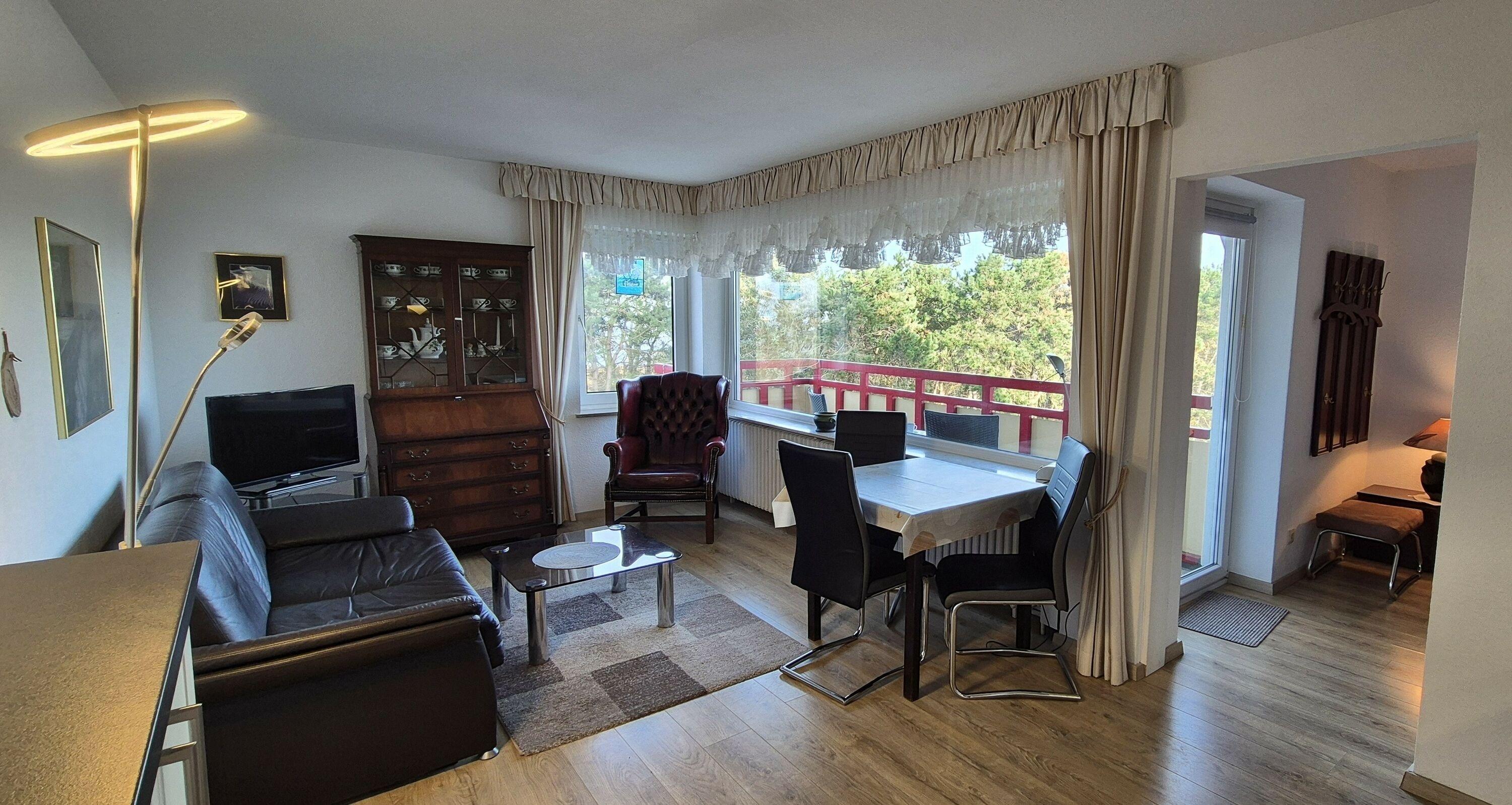 Gemütliche Ferienwohnung mit Meerblick, Balkon, Pool und Sauna in Duhnen, ideal für einen erholsamen Urlaub.