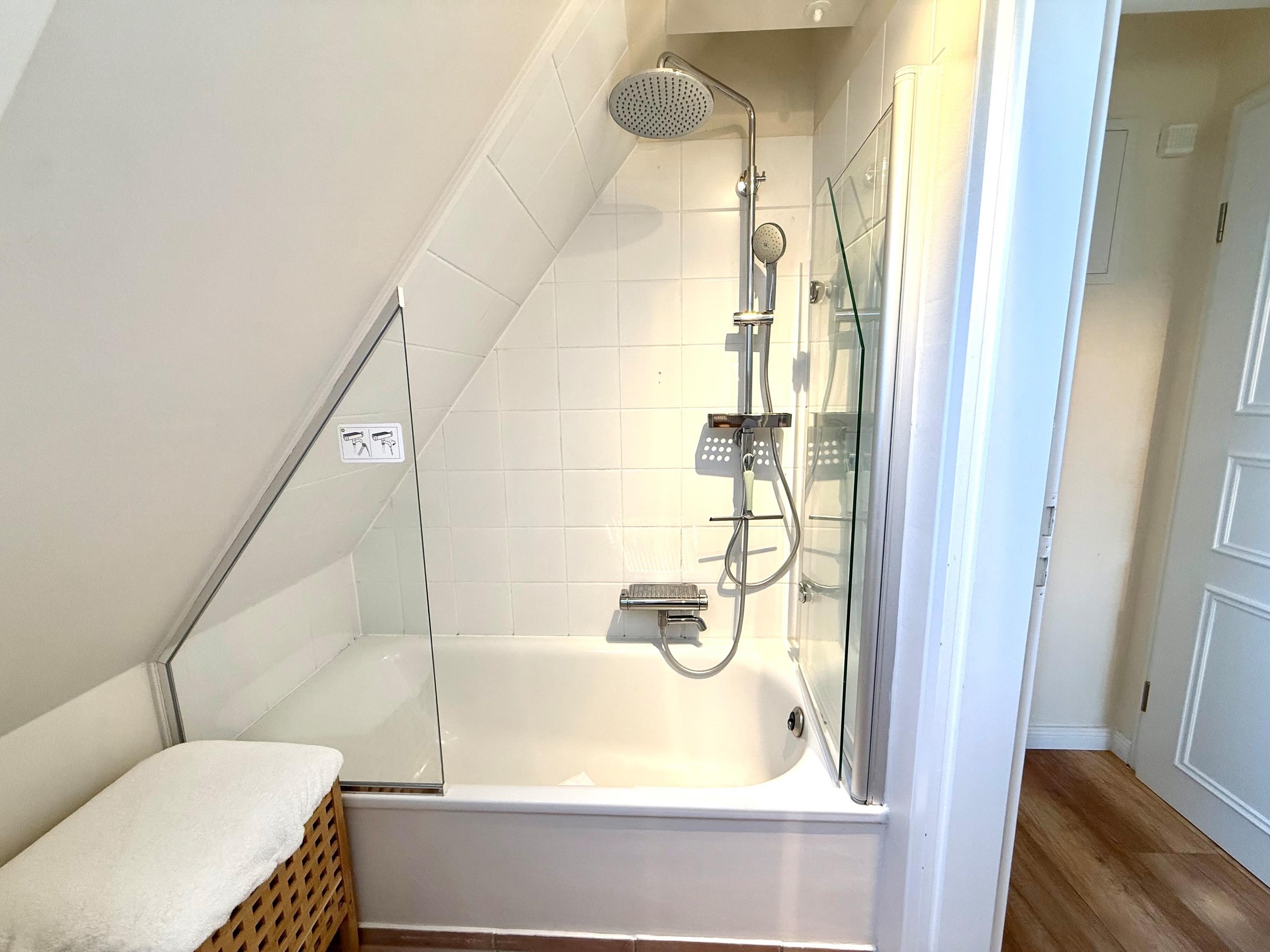 3 - Zimmer-Wohnung im Deichhof Dunsum, Whg.26, Infos unter www.deichhof-föhr.de. Diese attraktive Dachgeschoss-Wohnung (ca. 55 m²) für 2 Personen in einem Einzelhaus mit 5 Wohneinheiten im Deichhof besticht durch Ruhe und Gemütlichkeit auf hohem Wohnniveau. Die geschmackvoll und liebevoll eingerichtete Wohnung wurde Ende 2018 grundlegend renoviert und modernisiert. Sie besteht aus einem lichtdurchfluteten Wohnraum mit Essbereich, einem Schlafzimmer, einem Duschbad mit Badewanne und einer offenen Küchenzeile in dem sich Tradition mit zeitgemäßem Komfort verbinden. Die Küche ist ausgestattet mit hochwertigen Markengeräten.