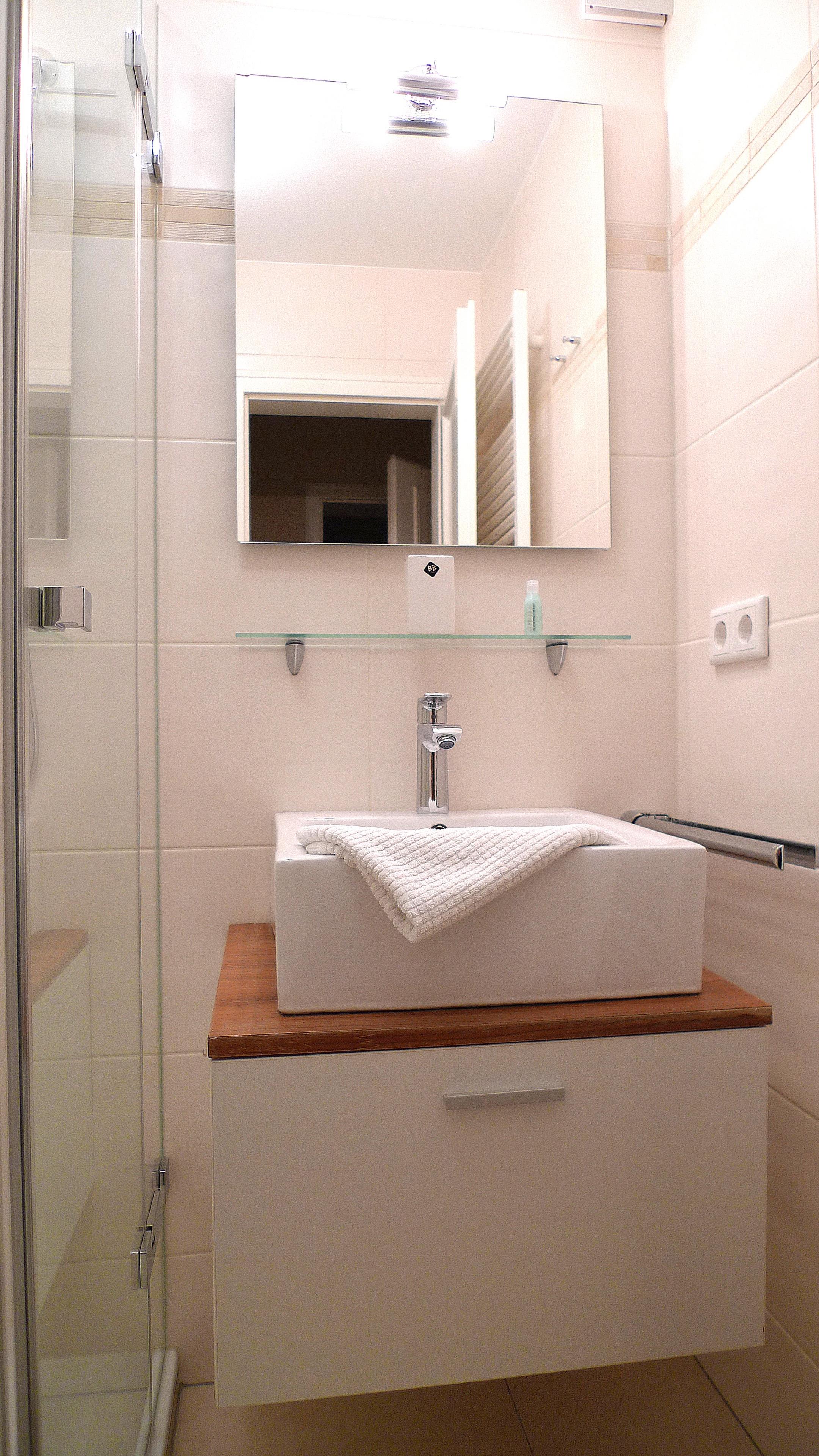 Die geschmackvoll und liebevoll eingerichtete Wohnung besteht aus einem Schlafzimmern und einem Wohnraum. Die Küche ist ausgestattet mit hochwertigen Markengeräten. Auch das Bad glänzt mit moderner Ausstattung.