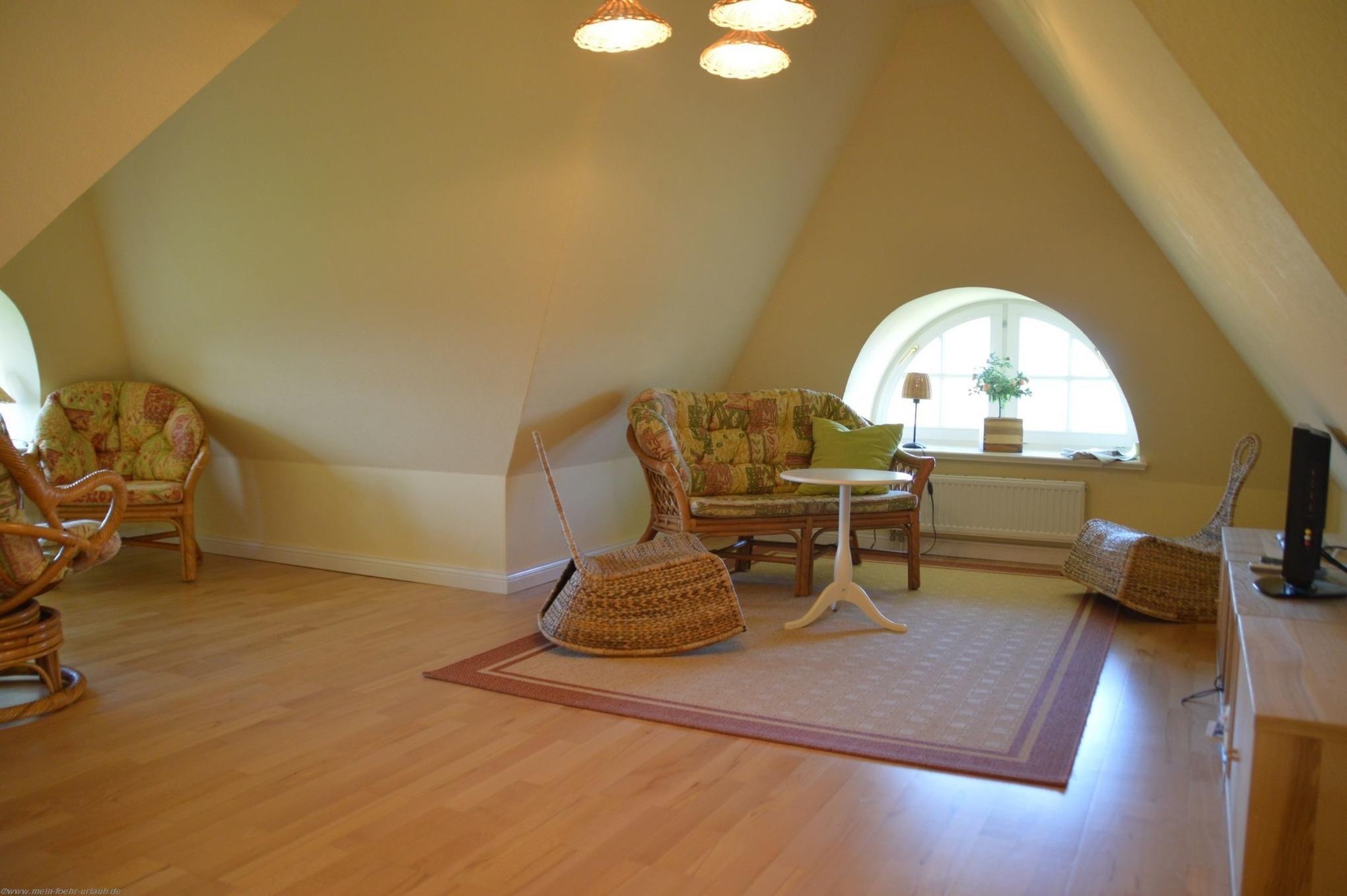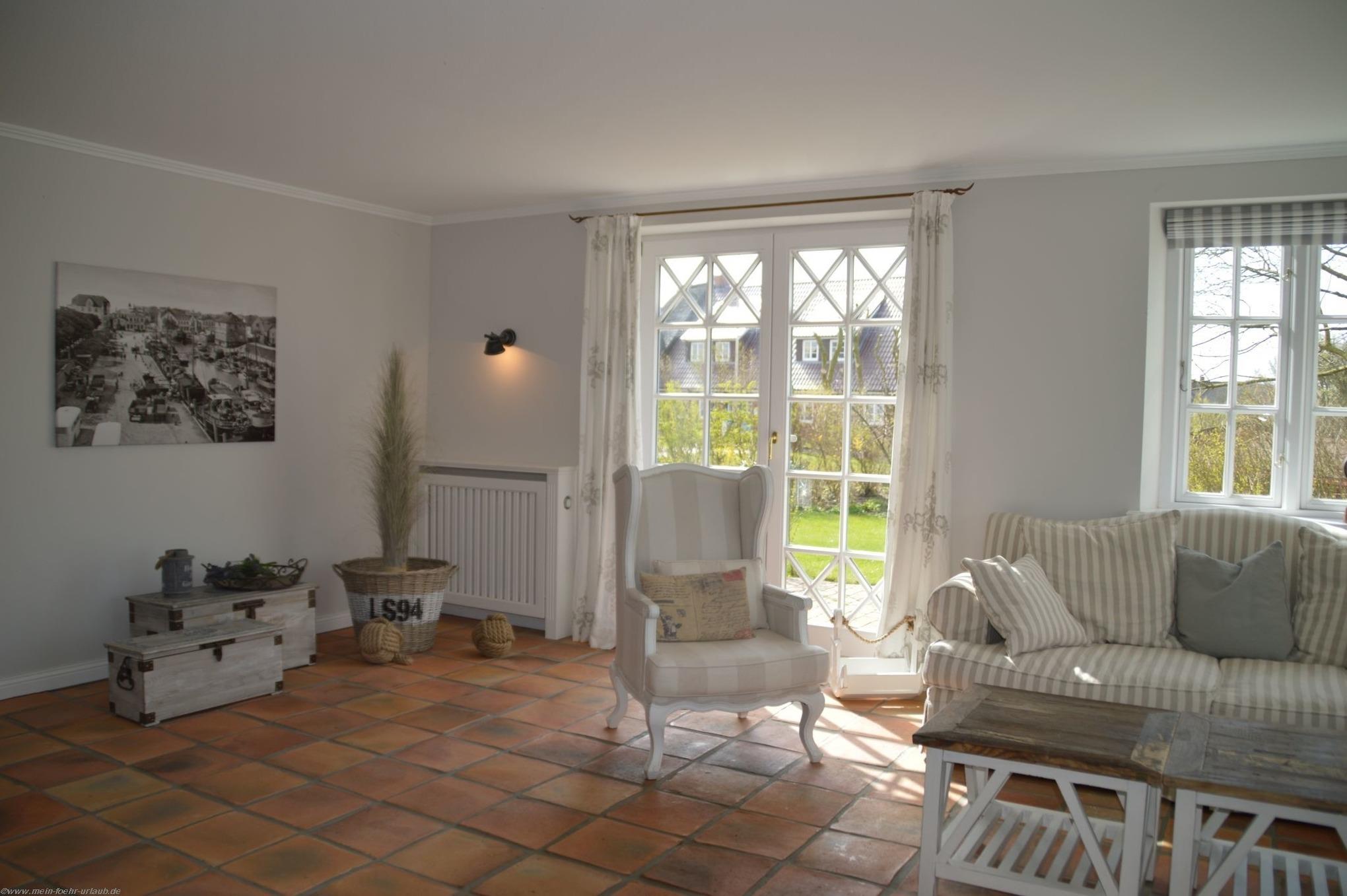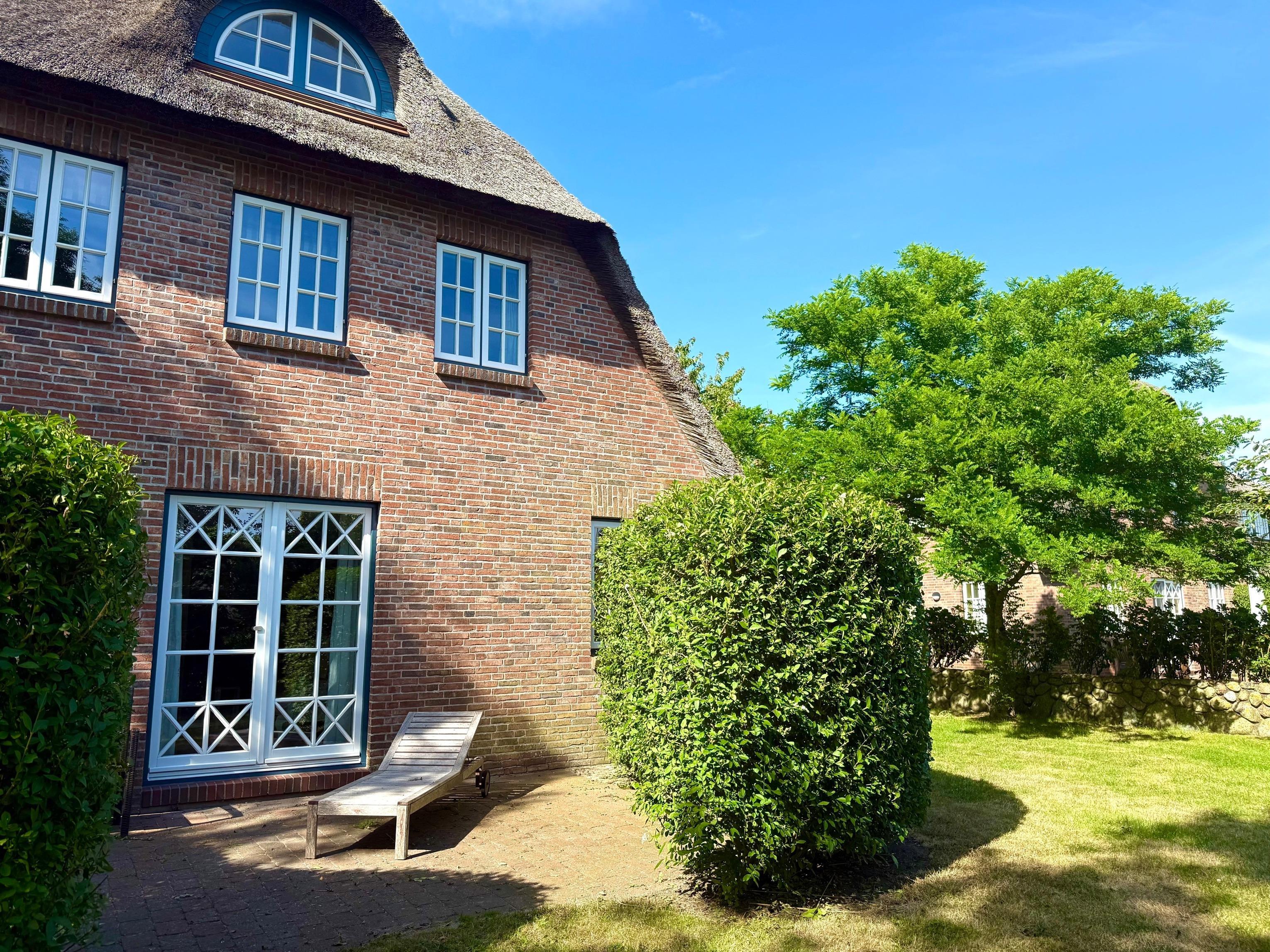 Angekommen und durchatmen, dieses Haus lässt keine Wünsche offen: von der kleinen Gruppe Reetdachhäuser liegt es in vorderster Front zur Natur mit freiem Panoramablick auf Wiesen und den Deich. Hier erleben Sie wohl die schönsten Sonnenuntergänge Föhrs direkt vor der Haustür. Genießen Sie die Großzügigkeit der lichtdurchfluteten Räume mit hochwertigen Terracotta-, Holzdielen- oder Parkettfußböden, und die einzigartigen Ausblicke aus jedem Fenster. Der 750 m² große Garten bietet Ihnen Flexibilität, tageszeit- und witterungsabhängig immer ein windgeschütztes Schatten- oder Sonnenplätzchen zum Wohlfühlen zu finden.