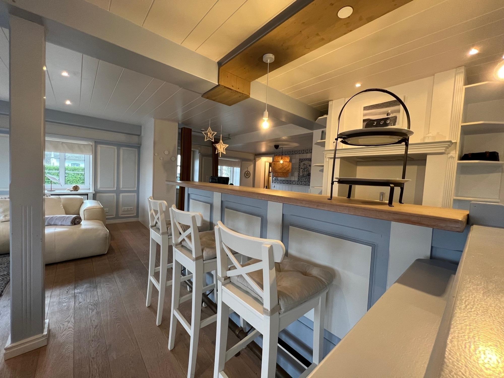 Unsere modern und wertig eingerichtete Ferienwohnung verfügt über zwei schöne Schlafzimmer, ein großes Wohnzimmer mit Wohnküche und ein geräumiges Badezimmer sowie ein zusätzliches Dusch-WC. In beiden Schlafzimmern befindet sich ein Doppelbett. So haben in der Wohnung maximal vier Personen Platz. Die helle und freundliche Atmosphäre in den Räumen lädt zum Essen, Trinken und Verweilen ein. Die Wohnung befindet sich "barrierearm" im Erdgeschoss und verfügt über einen eingezäunten Garten an der Südseite des Hauses, der gerne von Ihnen genutzt werden darf. Im Garten befindet sich eine gemütliche, moderne Sitzgelegenheit zum Frühstücken und gemeinsamen Essen sowie zwei Sonnenliegen. Im Strandkorb können Sie die wunderschönen Sonnenuntergänge genießen oder auf der Bank vor dem Haus nachts die Sternschnuppen zählen.
