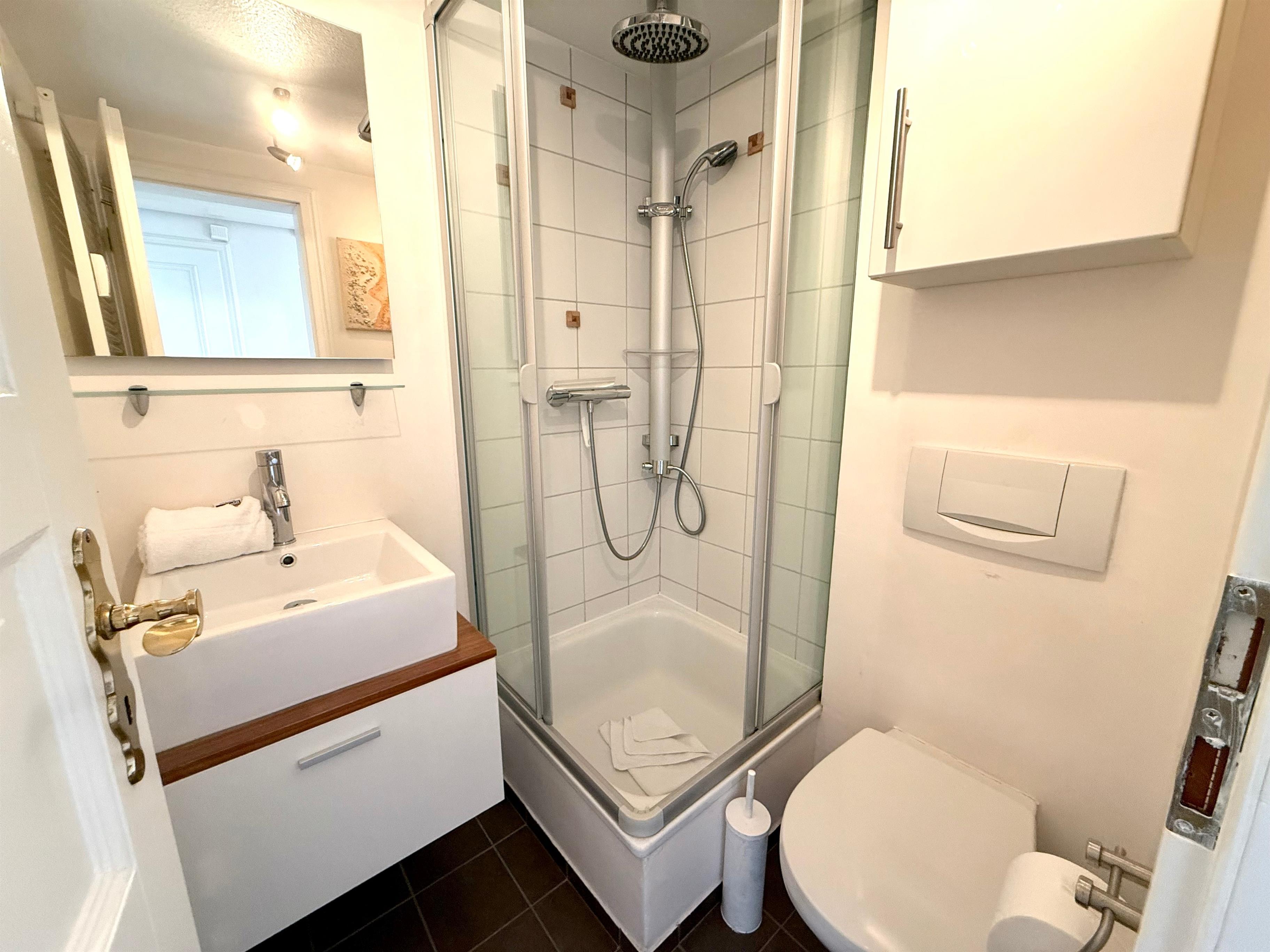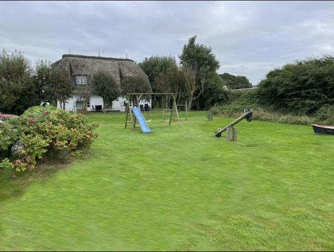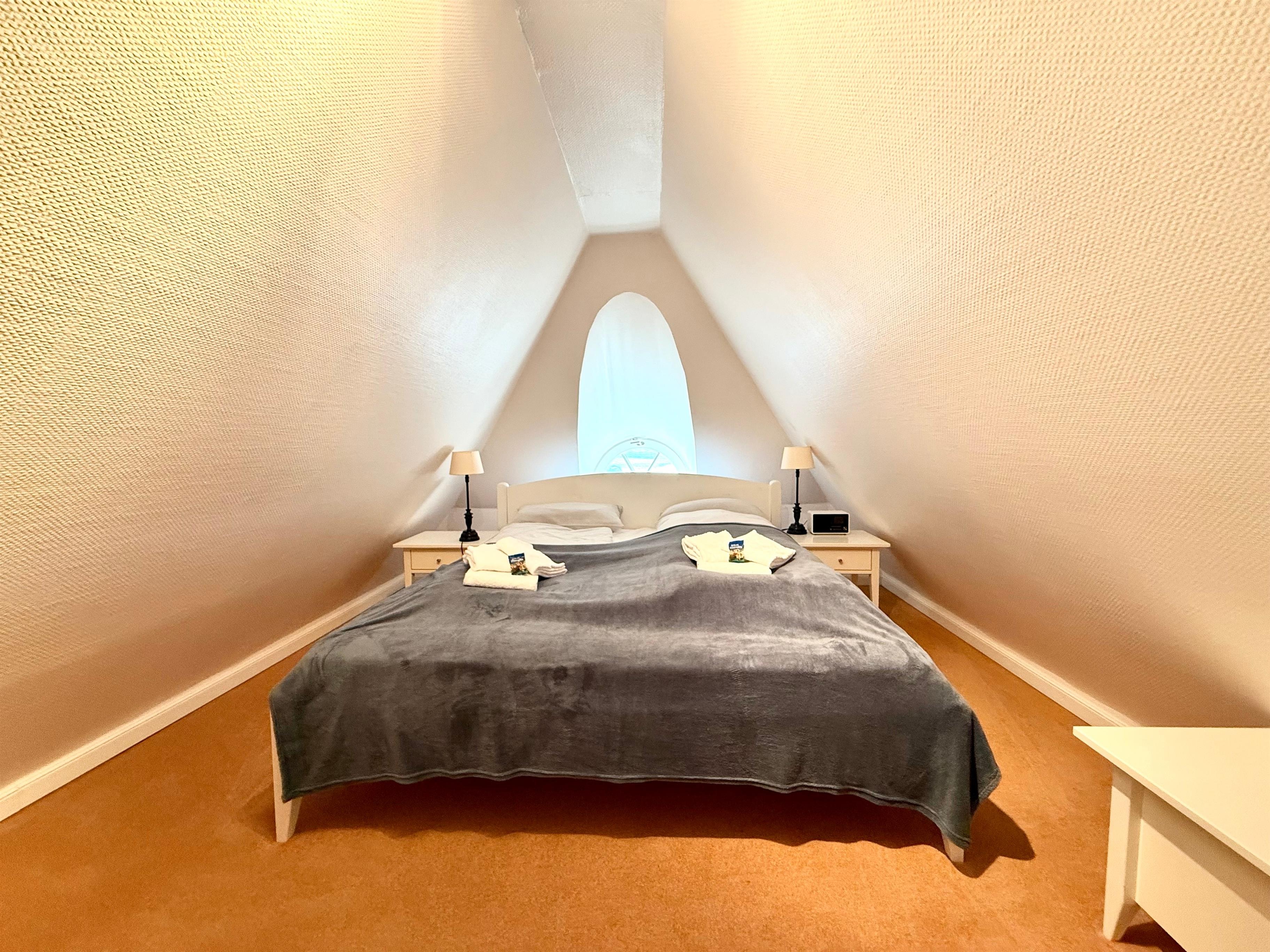 Diese attraktive Reetdach-Obergeschoss-Wohnung (50 m²) für 3 Personen in einem Einzelhaus mit 4 Wohneinheiten im Deichhof besticht durch Ruhe und Gemütlichkeit auf hohem Wohnniveau. Über die Diele gelangen Sie in das moderne Duschbad. Auf der linken Seite empfängt Sie ein "kleines" Schlafzimmer mit einem Einzelbett. Anschließend ersteckt sich der gemütliche, helle Essbereich mit modern ausgestatteter Küche und großzügigem Wohn-Wohlfühlbereich, der zu einem erholsamen und entspannenden Miteinander einlädt. Über eine Freitreppe gelangen Sie in den großzügigen Schlaf und Galeriebereich. Zu dieser Wohnung gehört ein PKW Stellplatz am Haus. In wenigen Fußmetern erreichen Sie den Hauswirtschaftsraum mit Waschmaschinen und Trocknern, auch zu Ihrer Verfügung. Im rückwärtigen Bereich steht Ihnen eine Picknickwiese mit Grillplatz und Sitzbänken zur Verfügung. Gleich daneben können sich Ihre Kinder auf dem großen Spiel- und Fußballplatz austoben. Vom Objekt aus haben Sie einen perfekten Ausgangspunkt für lange Spaziergänge am Strand und zur Wattwanderung nach Amrum, Fahrradtouren zu den Nachbarorten und in die Marsch und zu dem wohl schönsten Sonnenuntergang der Nordseeregion. Der Deichhof ist in der Gemeinde Dunsum angesiedelt, die im Westen der Insel Föhr liegt. Er liegt an der verkehrsberuhigten Ortsdurchfahrtstraße und reicht bis zu den weitläufigen Wiesenflächen, die direkt an den 500 m entfernt liegenden Deich der Nordsee reichen, mitten in die Natur eingebettet. Der Deichhof kann somit als Oase der Ruhe und Natürlichkeit betrachtet werden.