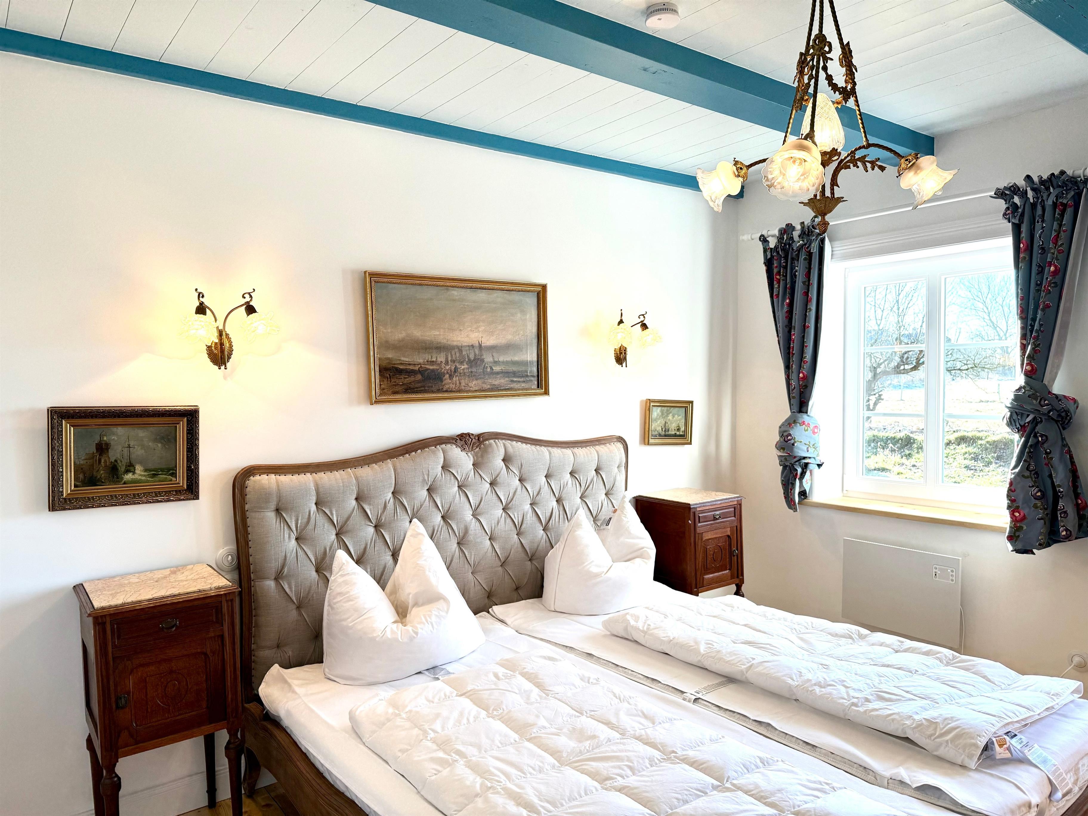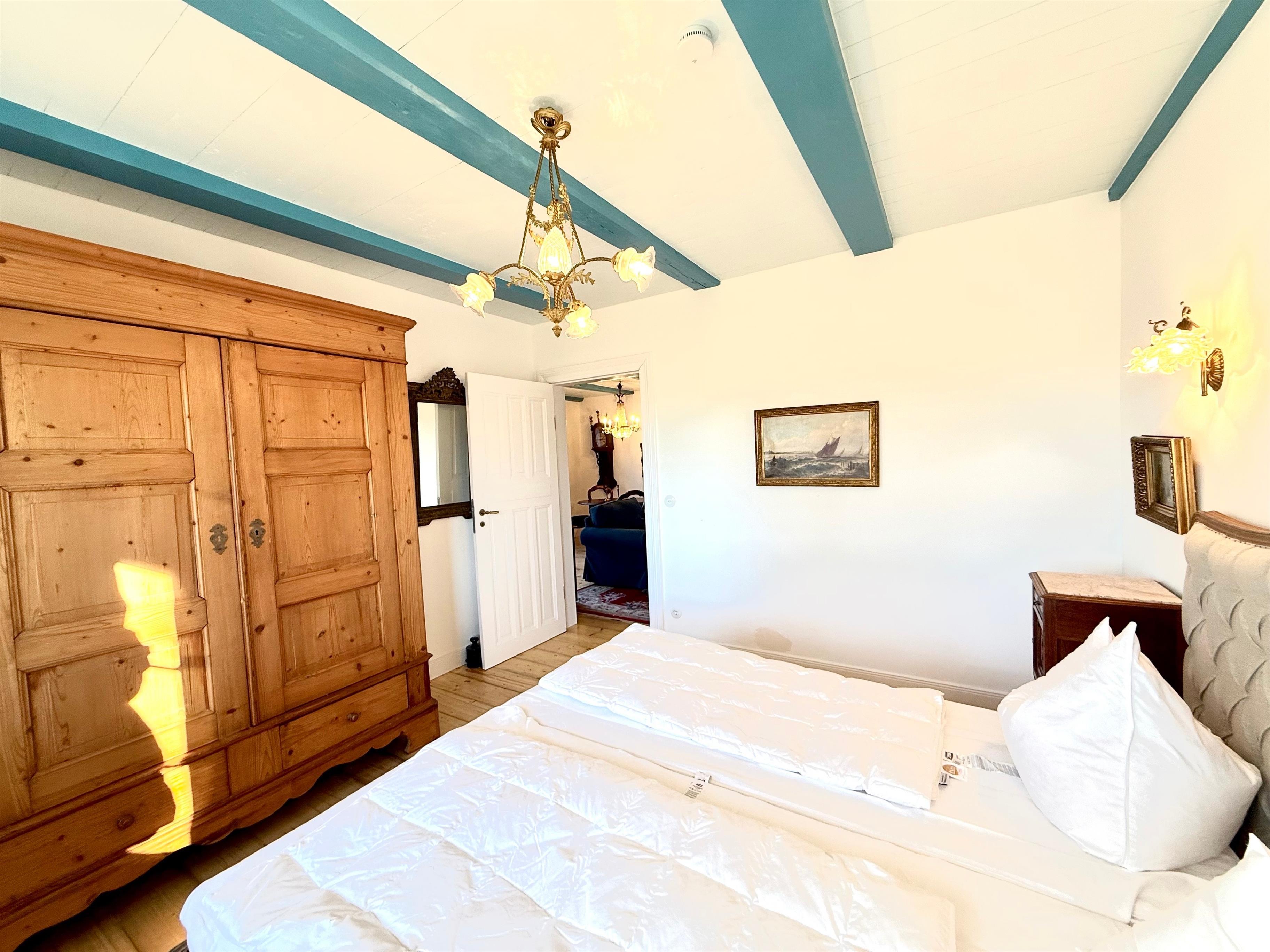 Von hier aus gelangen Sie in das Duschbad und die beiden Schlafzimmer mit Doppelbett. Das Bett im Hauptschlafzimmer hat eine Größe von 180 cm x 200 cm. Im kleineren Schlafbereich beträgt die Größe des Bettes 120cm x 200cm.