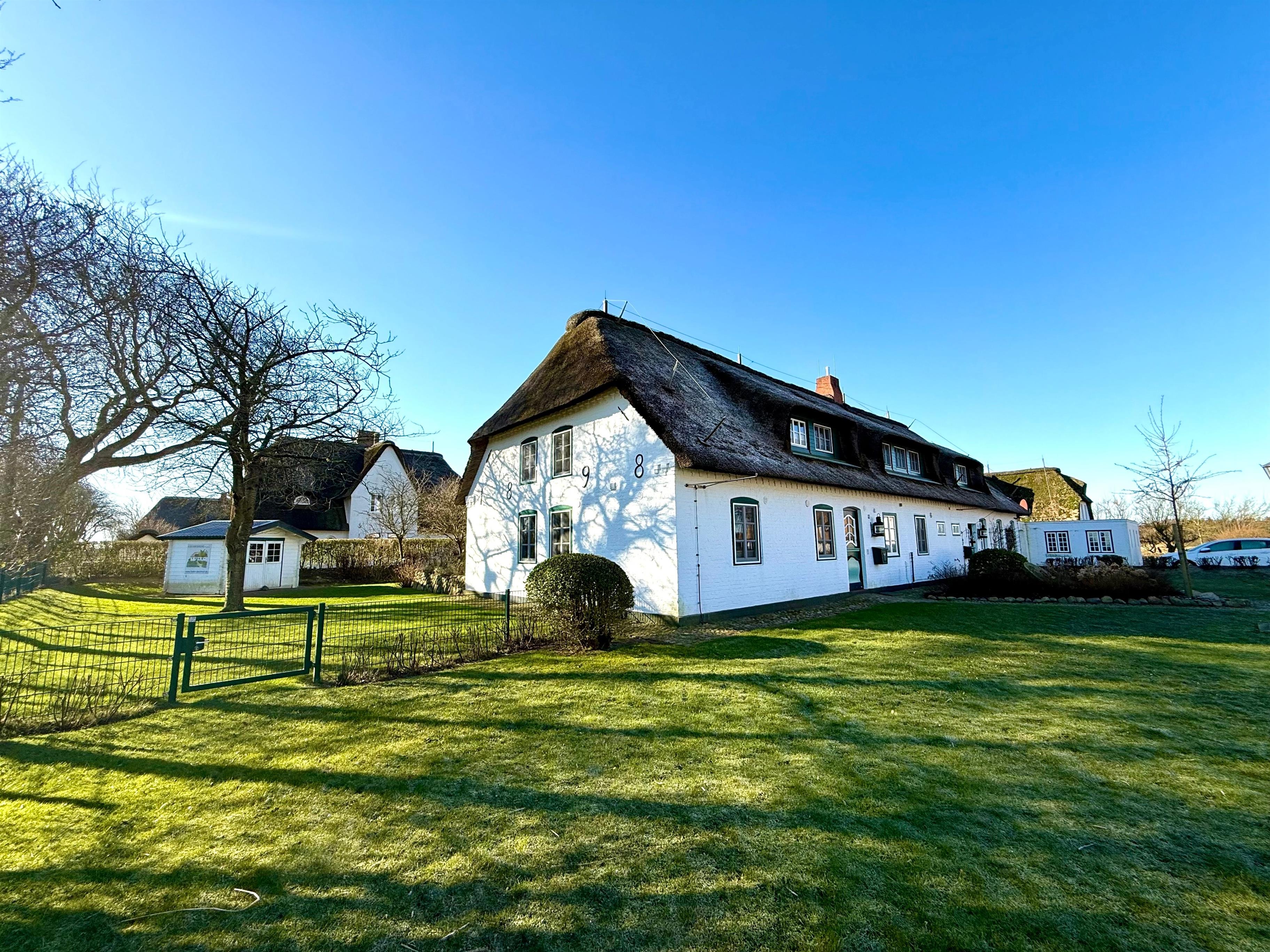 Der Deichhof ist in einem 14.500 m² großen Naturpark mit Friesenwällen, Seerosenteich, Spielplatz und Wiesen wie ein kleines Dorf angelegt. Er ist ein Ort zum Entspannen und bietet Möglichkeiten für vielfältige Aktivitäten - und ganz viel Ruhe. Abends gibt es hier, im Westen der Insel, die schönsten Sonnenuntergänge zwischen der Südspitze Sylts und dem Nordzipfel von Amrum.