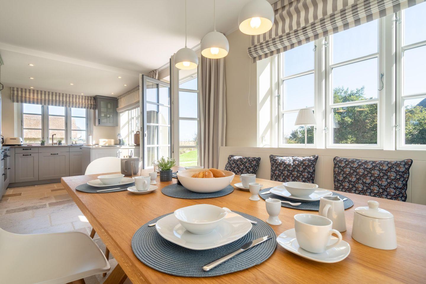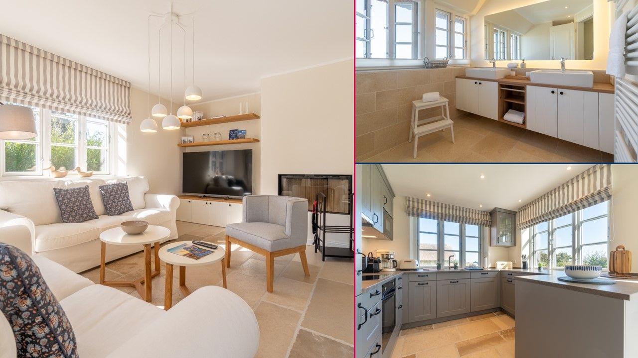 Die reetgedeckte Doppelhaushälfte Haus Deichblick 2, die im Jahr 2022 neu gebaut wurde, verfügt über 3 Schlafzimmer und 2 Bäder und bietet somit komfortabel Platz für bis zu 6 Personen zuzüglich einer Kleinkinderaufbettung. Auch 1 Hund ist herzlich willkommen.