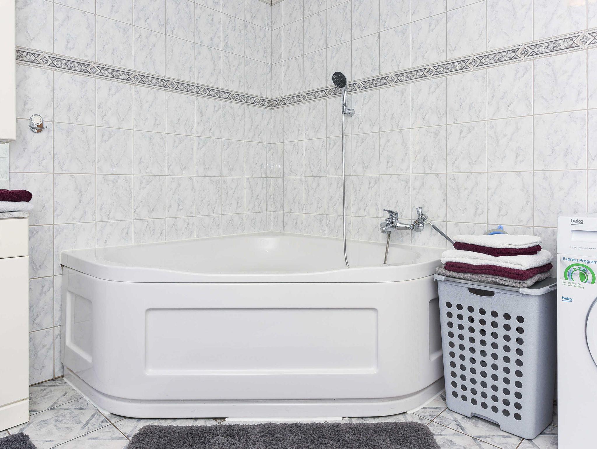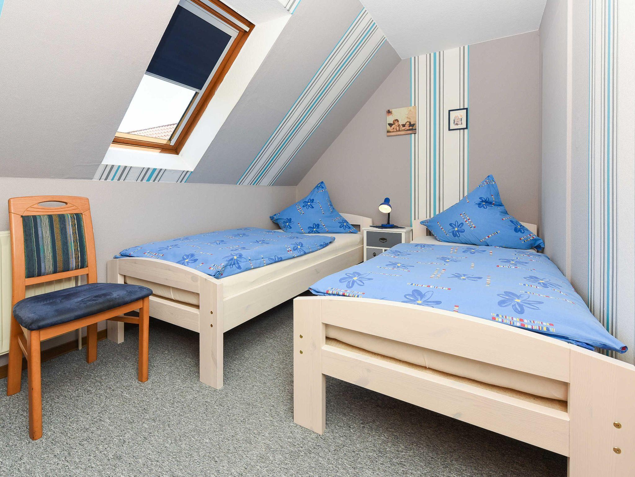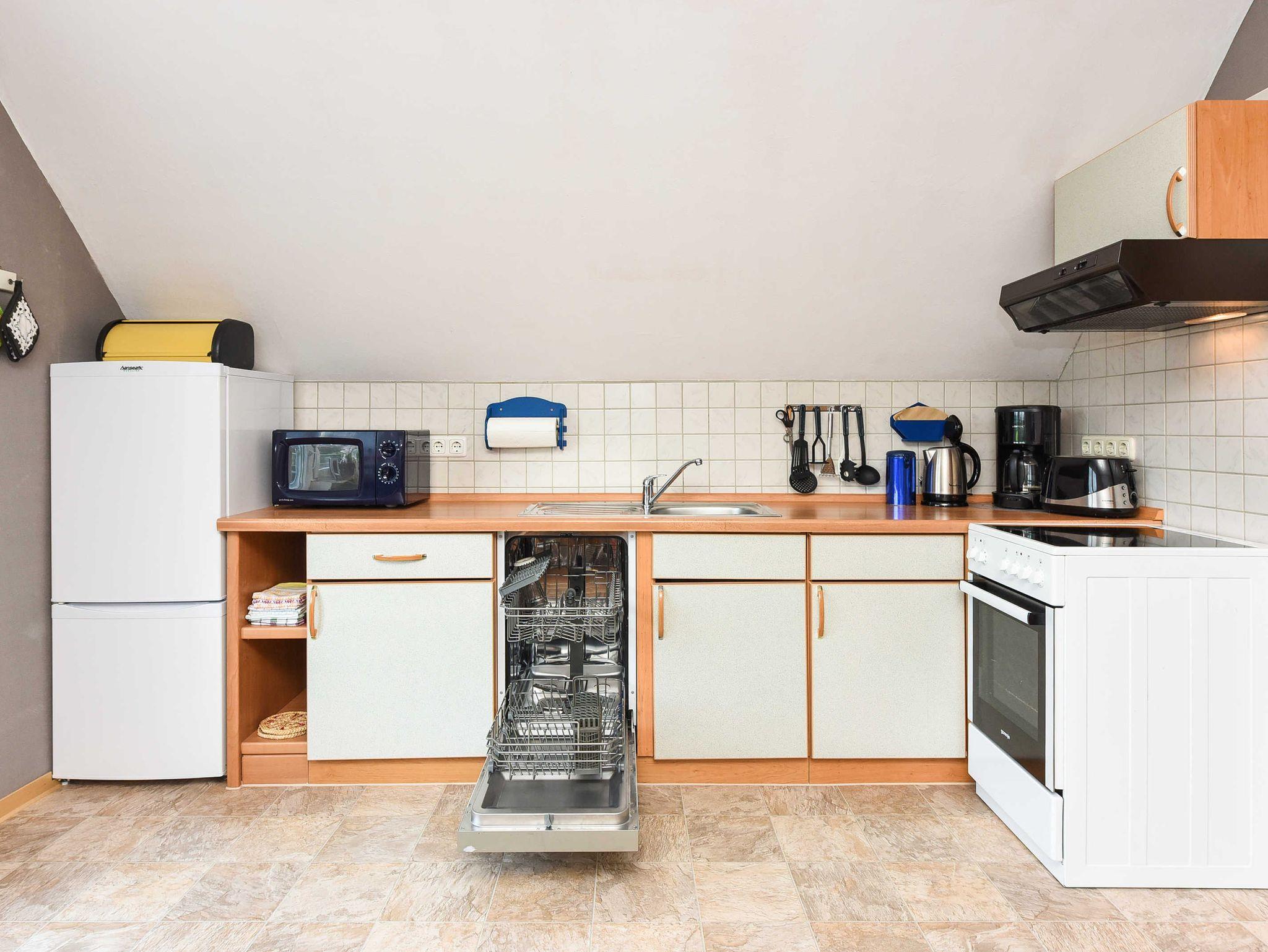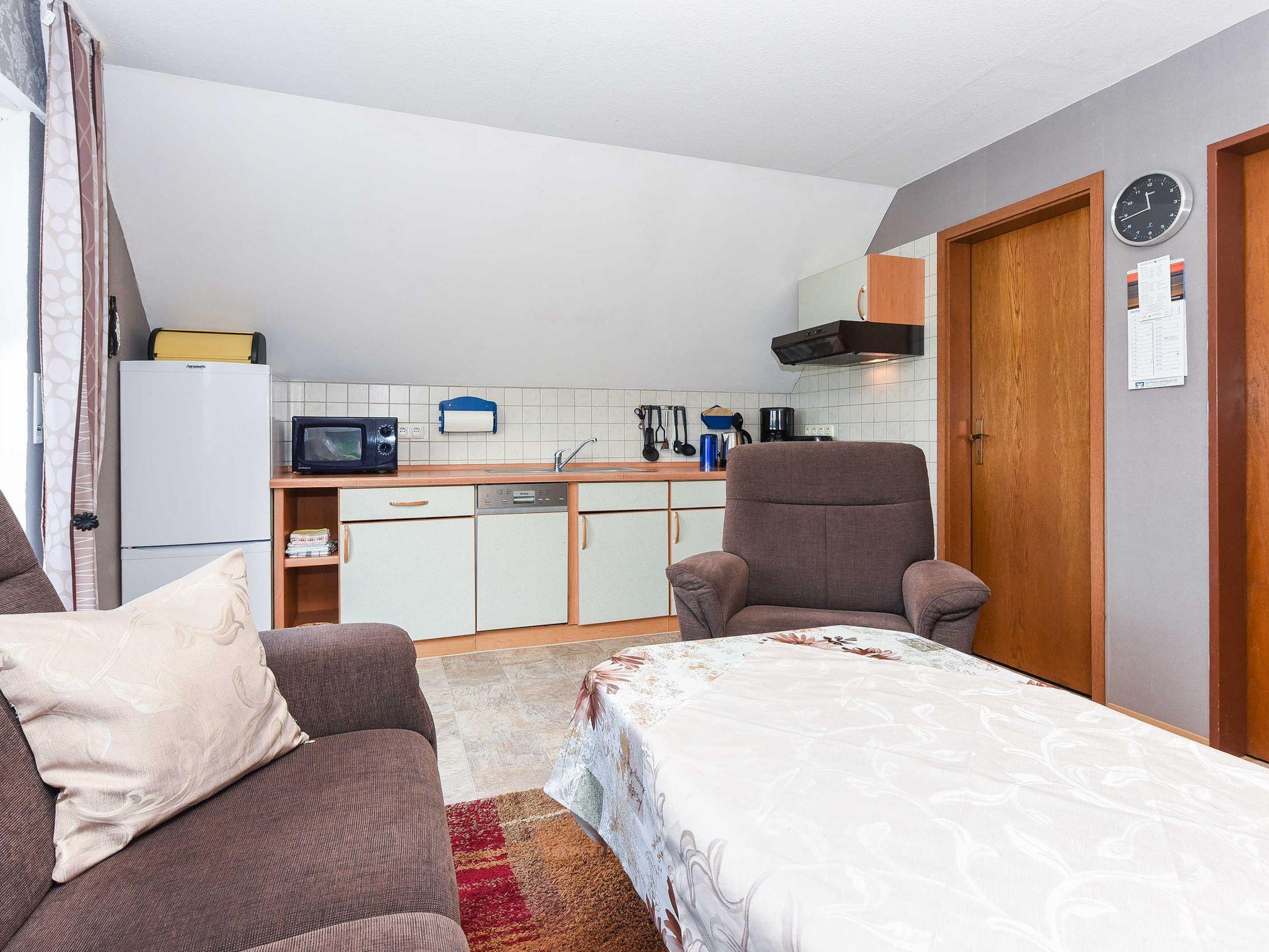 Größe ca. 55,5 Quadratmeter, Wohnraum mit integrierter Küche, Schlafzimmer, zweites separates Schlafzimmer/Kinderzimmer, Badezimmer mit Badewanne, Dusche, Waschtisch und WC, Obergeschoss, Terrasse (Sitzgruppe im Garten), Balkon, optimal für 2 bis 4 Personen und zusätzlich ein Kleinkind.