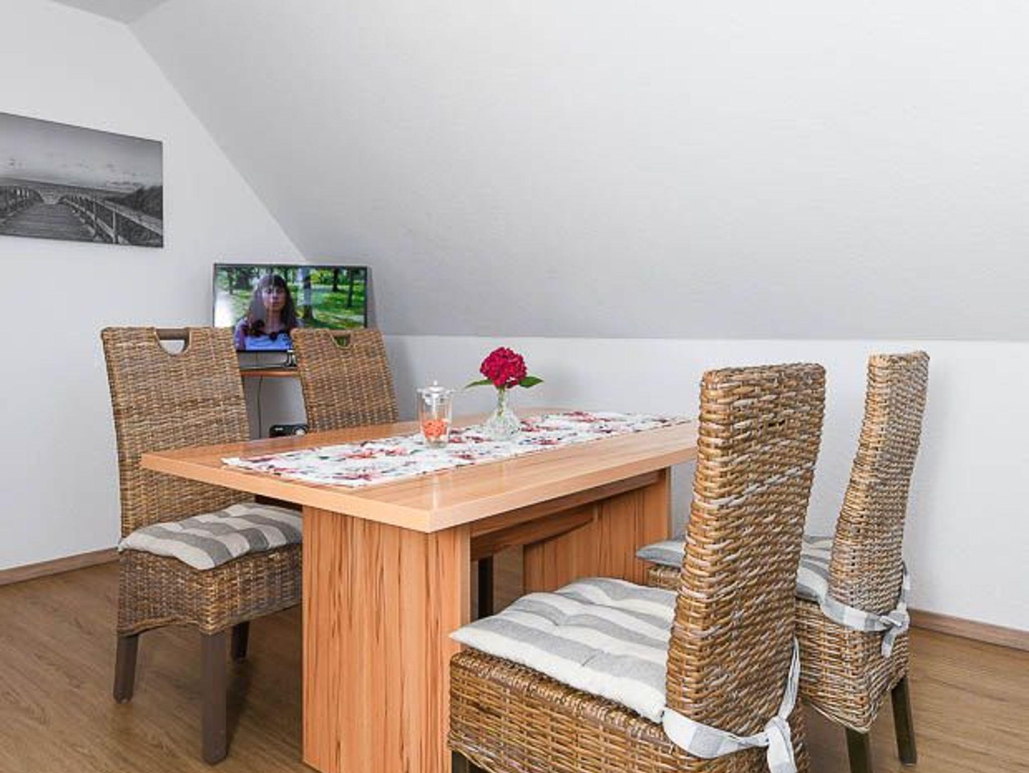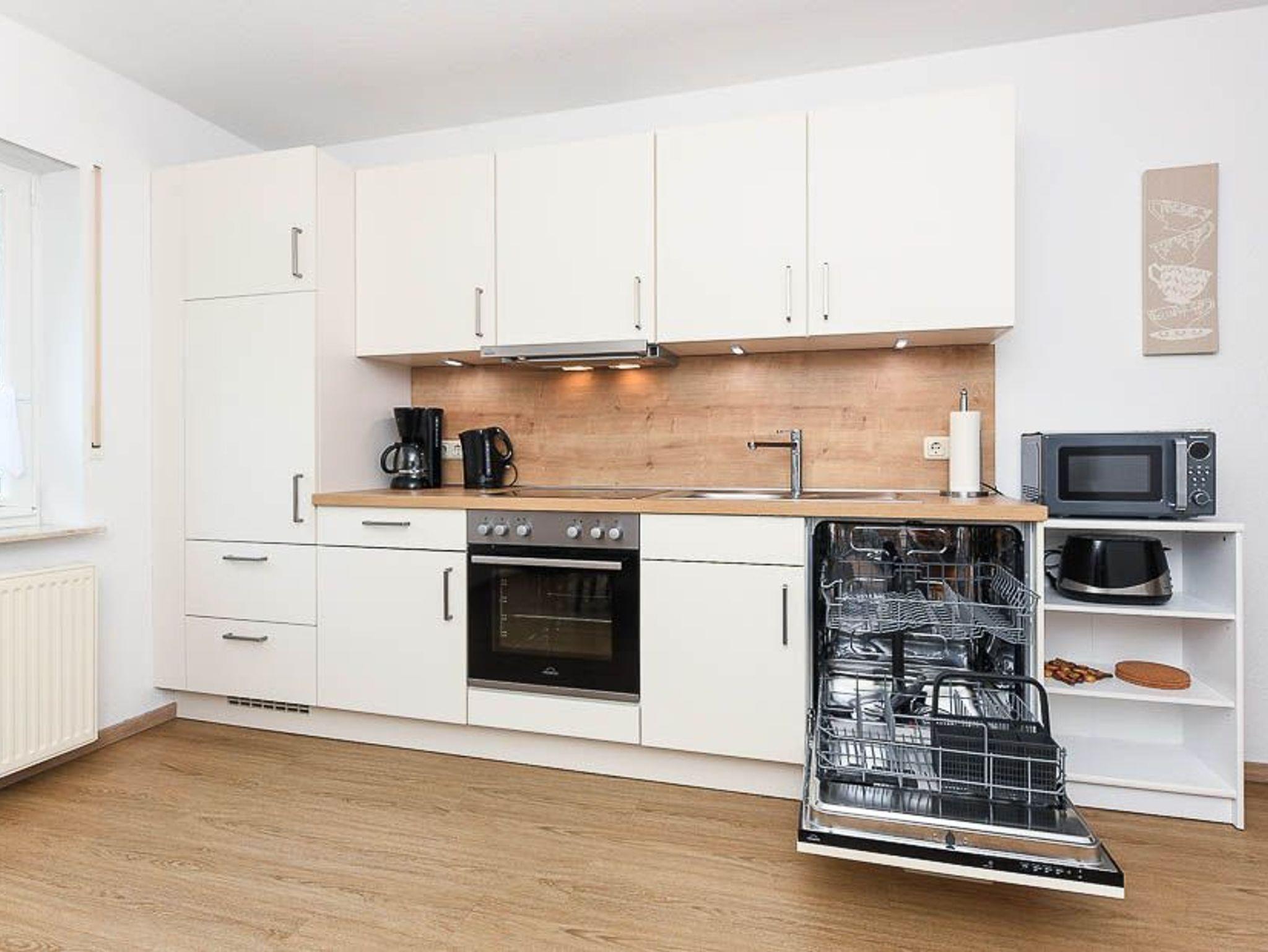 Größe ca. 90 Quadratmeter, Wohnzimmer, Küche, Schlafzimmer, zweites separates Schlafzimmer/Kinderzimmer, Badezimmer mit Badewanne, Dusche und Waschtisch, separates WC mit Waschtisch, Obergeschoss, optimal für 2 bis 4 Personen.