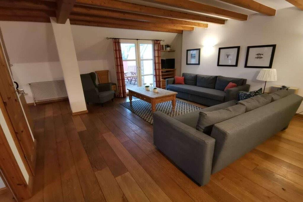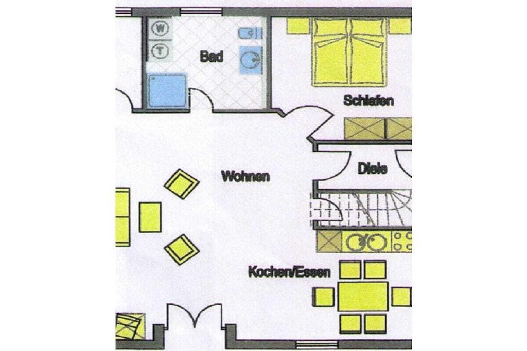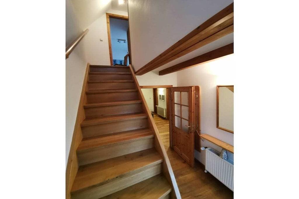 Parterre: (offene Küche(TV, Kochherd, Backofen, Kühlschrank), Wohn/Esszimmer(, Schlafcouch 1 Pers., TV, Esstisch), Schlafzimmer(, Doppelbett), Badezimmer(, Toilette, Dusche, Waschbecken), Waschraum(Trockenschrank)) In der 1. Etage: (Schlafzimmer(, Einzelbett, Einzelbett, Einzelbett), Schlafzimmer(Einzelbett), Toilette(, Toilette, Waschbecken)) , , , Internet, Trockner, Waschmaschine, Heizung, Garten(, Sauna), Parkplatz, Trockenschrank