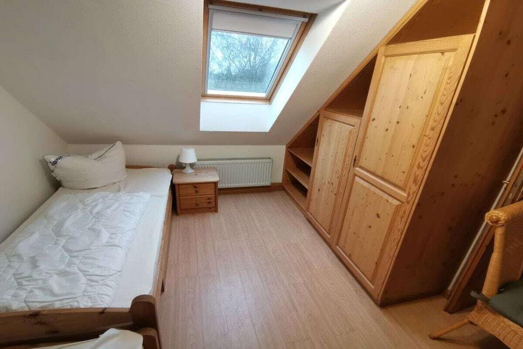 Dieses gemütliche Ferienhaus in Butjadingen an der Nordsee bietet Ihnen alles, was Sie für einen erholsamen Aufenthalt benötigen. Auf zwei Etagen finden Sie ausreichend Platz für Ihre Familie oder Freunde, um sich zu entspannen und die frische Nordseeluft zu genießen. Erdgeschoss: Im Erdgeschoss befindet sich ein Schlafzimmer mit Doppelbett, ideal für erholsame Nächte. Die moderne Küche ist vollständig ausgestattet und lässt keine Wünsche offen, um Ihre Mahlzeiten in Ruhe zuzubereiten. Ein Bad mit Dusche sorgt für zusätzlichen Komfort. Das helle Wohnzimmer lädt zum Verweilen und Entspannen ein, und ein praktischer Abstellraum bietet Platz für Ihr Gepäck oder Sportequipment. Obergeschoss: Das Obergeschoss verfügt über ein Schlafzimmer mit drei Betten, ideal für größere Kinder oder Freunde, die gemeinsam schlafen möchten. Ein weiteres kleines Schlafzimmer mit einem Einzelbett eignet sich perfekt für kleinere Gäste. Das zusätzliche WC mit Waschbecken sorgt für mehr Komfort und ist besonders praktisch für Familien. Besonderheiten: Nichtraucherhaus Trockner und Waschmaschine befinden sich im Bad, um Ihnen zusätzlichen Komfort zu bieten Für Ihre absolute Entspannung sorgt die besondere Saunaanlage des Hauses. Im rustikalen Fasssauna-Wellnessbereich können Sie sich nach einem erlebnisreichen Tag in der Natur der Nordsee verwöhnen lassen. Der Duft der finnischen Polarkiefer und das gemütliche, urige Ambiente der Sauna machen den Aufenthalt zu einem echten Wohlfühlerlebnis. Dieses Ferienhaus bietet Ihnen die perfekte Kombination aus modernem Komfort und traditioneller Gemütlichkeit – der ideale Ort für einen erholsamen Urlaub an der Nordsee.