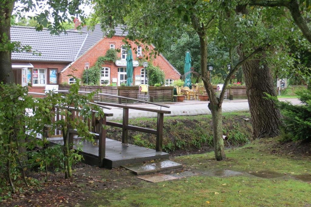 In Butjadingen am Nordseebad Eckwarderhörne befindet sich diese behagliche Ferienwohnung in einem 2002 vollständig umgebauten Restbauernhof. Der gemütliche Charakter dieses Gebäudes ist erhalten geblieben. So ist die Ausstattung aus Echtholz, eine alte Balkenlage ist noch zu sehen, der aus Eichenbohlen bestehende Bodenbelag (neu verlegt in 2014) vermittelt Gemütlichkeit und Wärme. Das 1.800 qm große Grundstück verfügt über eine große Spielwiese, eine Grillhütte steht unseren Gästen zur Verfügung. In 2 Schlafzimmern, 1 Küche und 1 Wohnzimmer und einem zusätzlichen Bett (1,40m) auf der Galerie finden bei uns bis max. 5 Urlauber auf 2 Etagen Platz. In der 1. Etage fühlen sich gerne kleine Gäste wohl, ist doch hier Platz zu spielen.