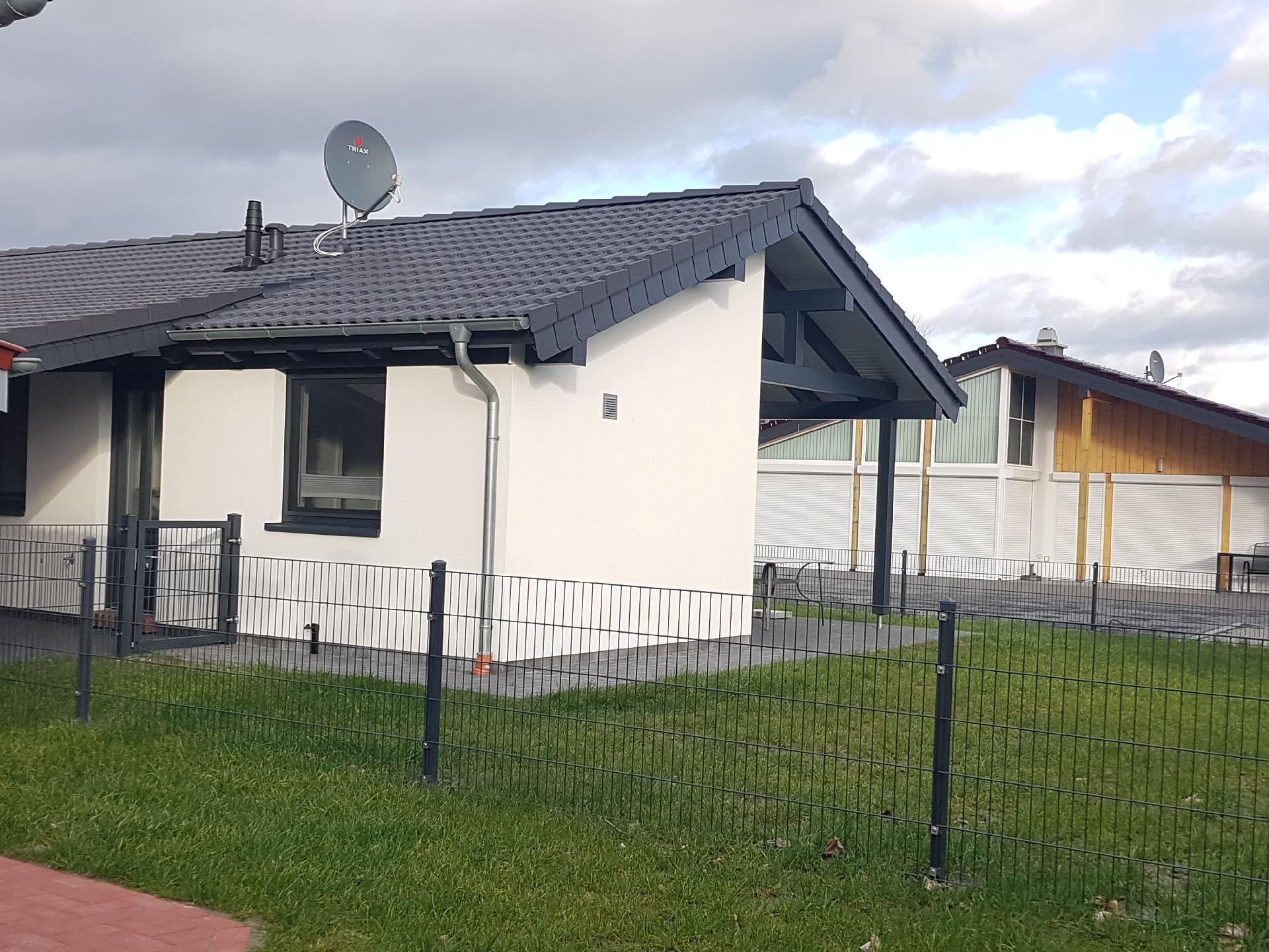 Neubau! Freistehender, ebenerdiger Bungalow (Baujahr Juli 2020) für 6 Personen, kostenloses WLAN, Kinderreisebett und Hochstuhl, eigenes ca. 313 qm großes Grundstück, elektr. Rollläden mit integrierten Fliegengittern in den 3 Schlafzimmern, restliche Fenster + Terrassentür mit Fliegengittern, alle Räume gefliest, jedes Schlafzimmer hat einen Fernseher, Außenwasserhahn, Wand-Handtuchheizkörper, Waschmaschine,3 Schlafzimmer mit ebenerdigen Betten: 1 Schlafzimmer mit Doppelbett 180 x 200, 2 Schlafzimmer mit 2 x Einzelbett 90 x 200, großes Wohnzimmer mit 6,5 m Fensterfront bis zum Boden, Badezimmer mit ebenerdiger Dusche, 2. Badezimmer mit flacher Duschtasse, überdachte Sonnenterrasse mit Gartenmöbeln und Sonnenschirm, Carport und weiterer Stellplatz dahinter, komplett eingerichtete Einbauküche mit Geschirrspüler, Mikrowelle, Backofen und Ceranfeld.Abstellraum Waschmaschine.Kostenloses WLAN im Haus!Kurzbeschreibung 1Anzahl Küchen : 1Schlafzimmer 1Sonstige Schlafzimmereinrichtung : elektrische Rolladen mit integr. Fliegengitter, TVSchlafzimmer 2Sonstige Schlafzimmereinrichtung : elektrische Rolladen mit integr. Fliegengitter, TVSchlafzimmer 3Sonstige Schlafzimmereinrichtung : elektrische Rolladen mit integr. Fliegengitter, TV