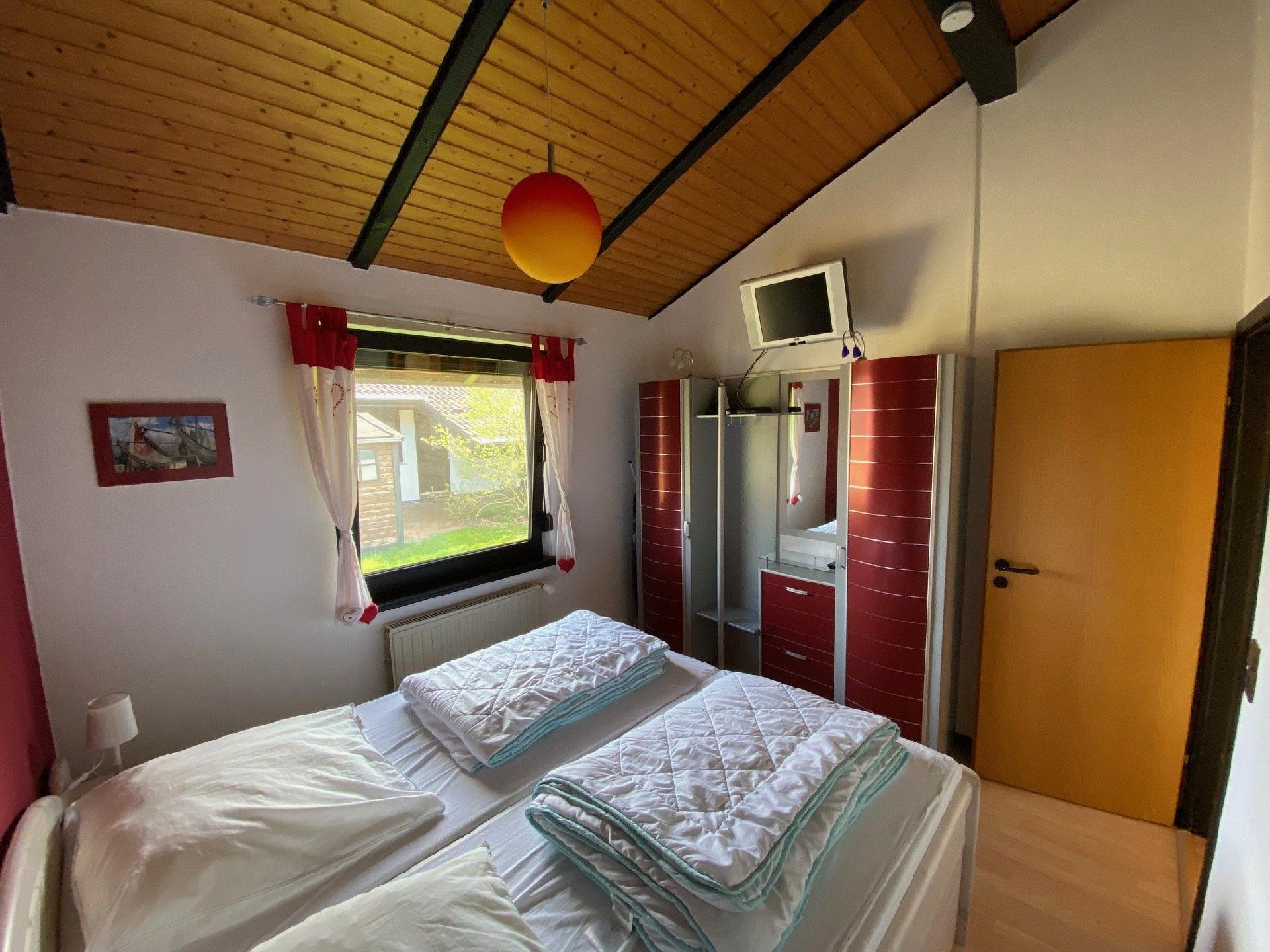 - 2 Schlafzimmer: 1 Schlafzimmer mit Doppelbett 1,80 x 2,00 m, 1 Schlafzimmer mit 2 x Einzelbett 0,90 x 2,00 m + 1x Hochbett 0,90 x 2,00 m (über Leiter zu erreichen)