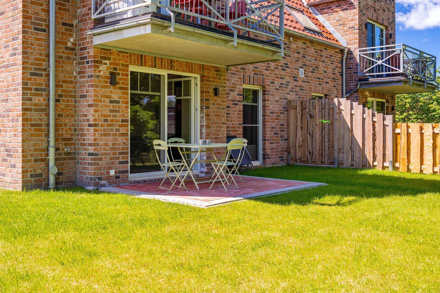 Moderne 72qm Ferienwohnung mit Terrasse und direktem Wasserblick in Eilsum, ideal für erholsame Tage an der Nordseeküste.