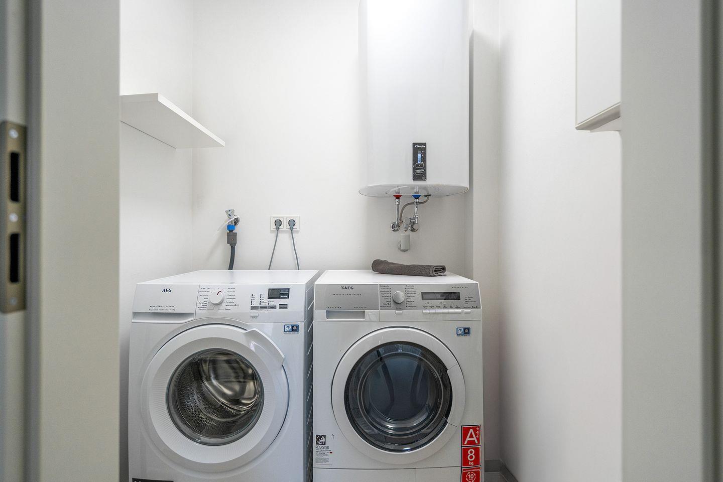 Im Abstellraum der Wohnung finden Sie eine Waschmaschine und einen Trockner.