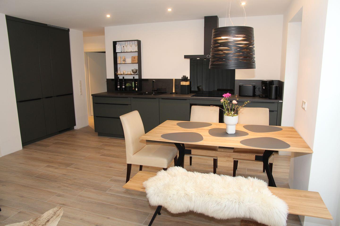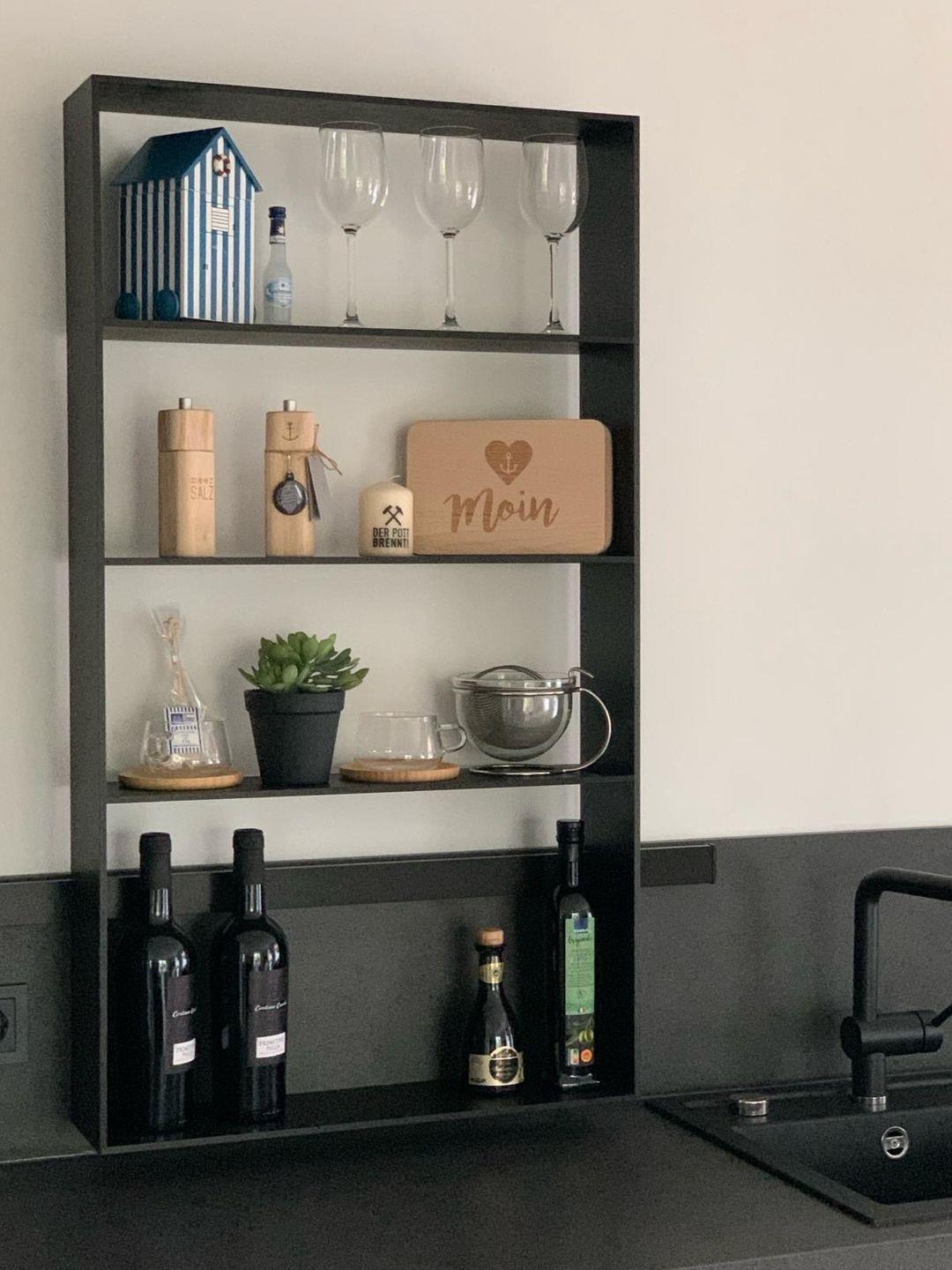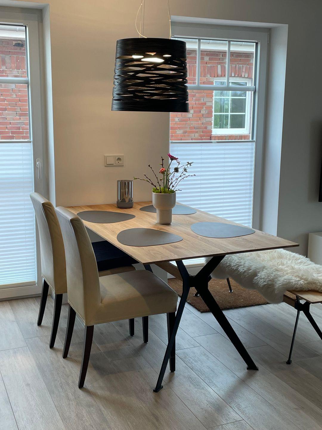 Das Interieur besticht durch ein geschmackvolles Design und hochwertige Möbel, die für ein modernes und dennoch gemütliches Ambiente sorgen. Der offene Wohnbereich mit seinen bequemen Sitzgelegenheiten, Couch mit Récamiere und Sessel lädt zum Entspannen ein und bietet einen herrlichen Blick durch die bodentiefen Fenster auf den Garten und das umliegende Wasser. Ein großer Smart TV und Glasfaser WLAN (für uneingeschränkte Verfügbarkeit und ausreichende Geschwindigkeit übernehmen wir keine Gewähr) stehen zur Verfügung, um Ihnen Unterhaltung und Konnektivität zu bieten. Die voll ausgestattete und supermoderne Küche lässt keine Wünsche offen. Der angrenzende Essbereich ist der perfekte Ort, um Ihre Mahlzeiten zu genießen oder in geselliger Runde beisammenzusitzen. Für gute Beleuchtung haben wir gesorgt.