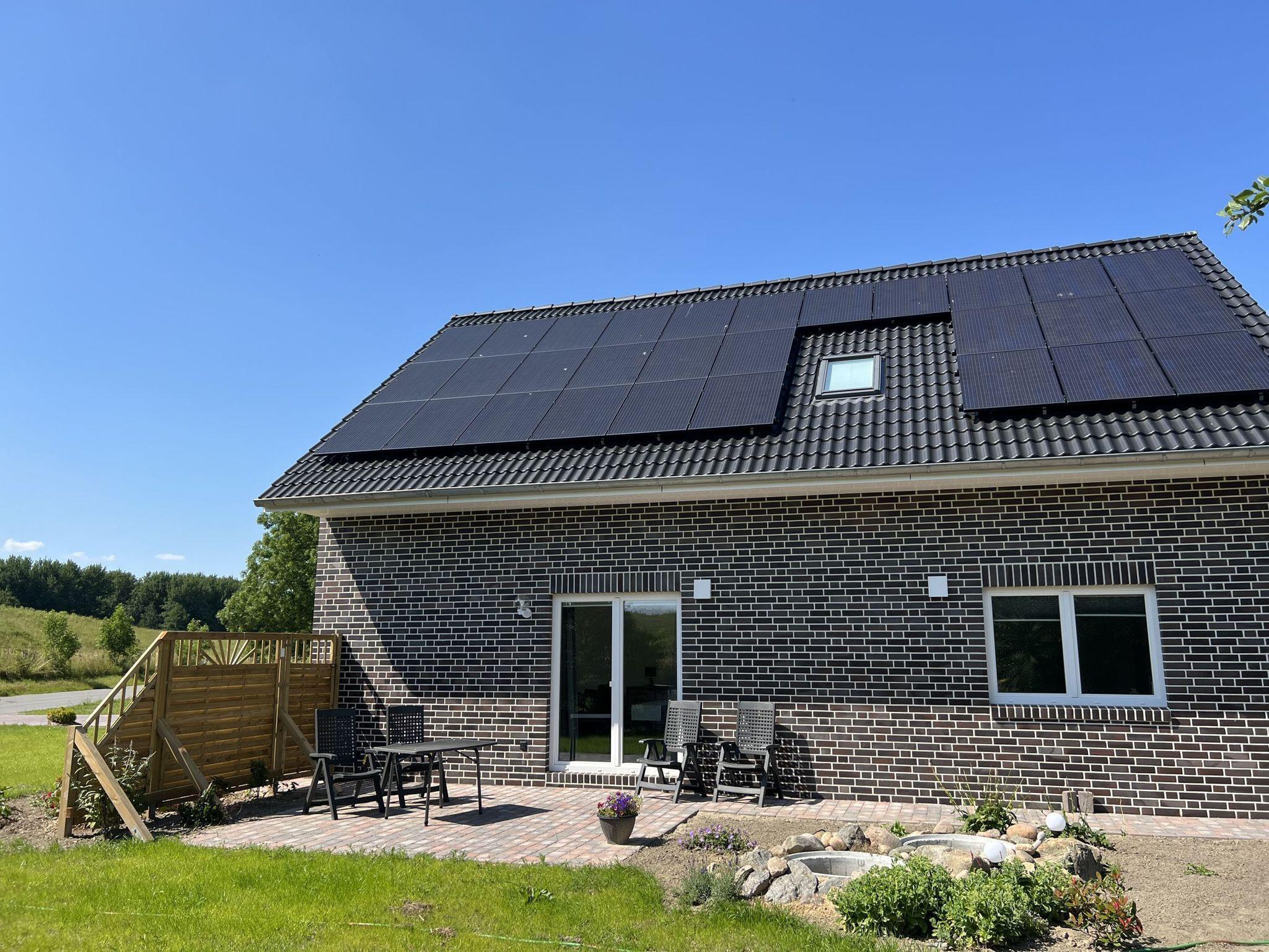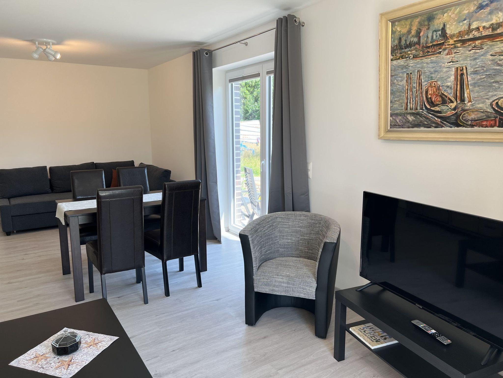 Nachhaltige Ferienwohnung Ebbe in Elpersbüttel mit Terrasse, Garten und Strandkorb.