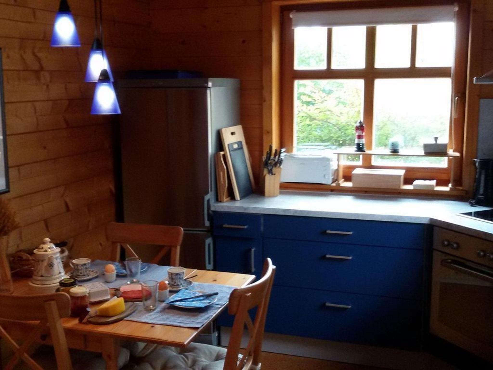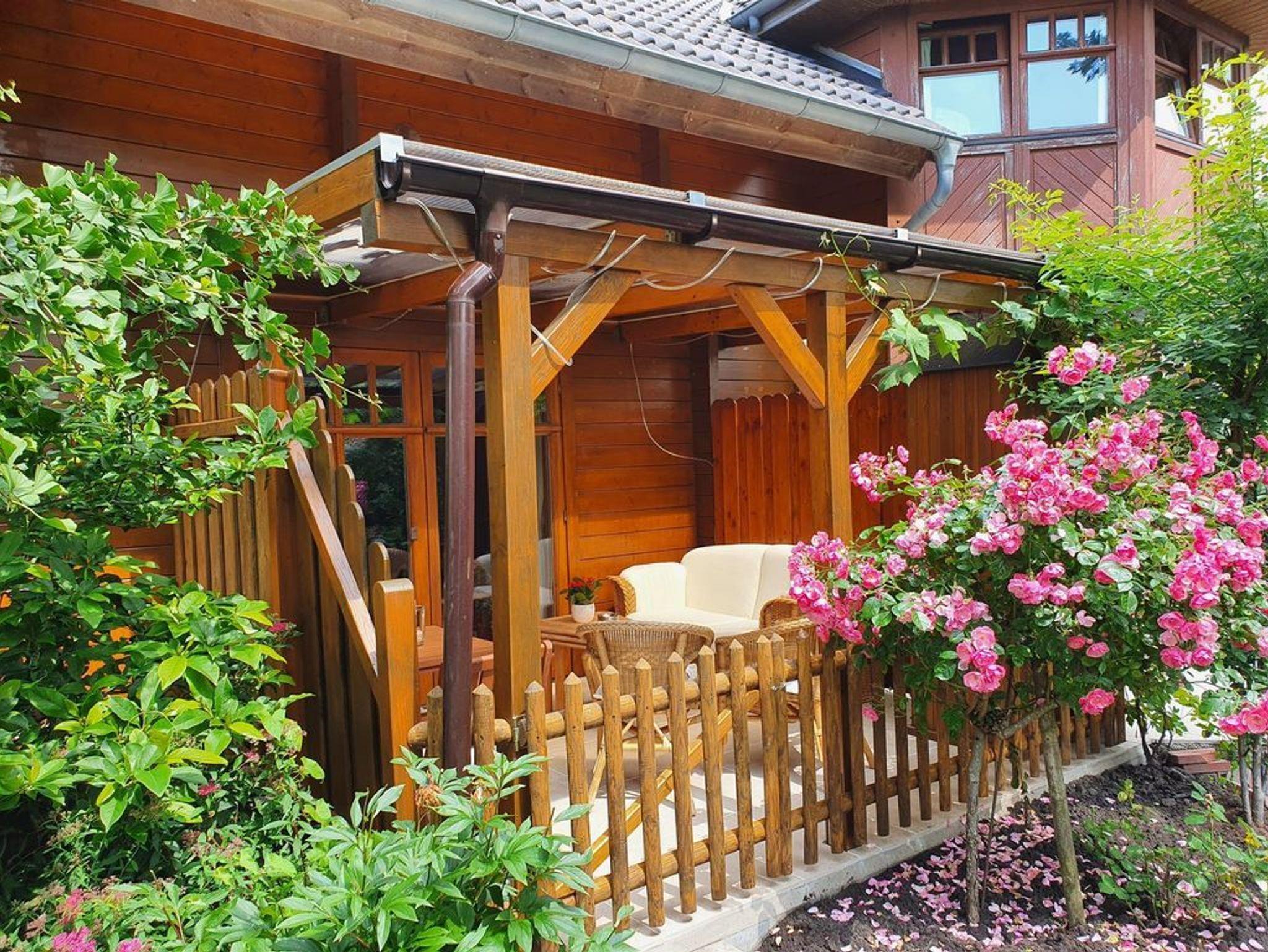 Das Haus mit Ferieneinliegerwohnung wurde 1999 mit Massivholzblockbohlen erstellt und befindet sich in ruhiger Lage in einer Spielstraße (Durchfahrt im Schritttempo!). Seit 2021 wird die Heizung und Warmwasser mit Hilfe einer Wärmepumpe und Solarthermie betrieben. Der Strom hierfür wird mit Hilfe einer großen PV-Anlage mit Batteriespeicher zum großen Teil selbst gedeckt. Vor dem Eingangsbereich ist der PKW-Stellplatz auf dem Grundstück. Im dort befindlichen Schuppen ist eine Unterstellmöglichkeit für Fahrräder. Akkus für E-Bikes können dort geladen werden.