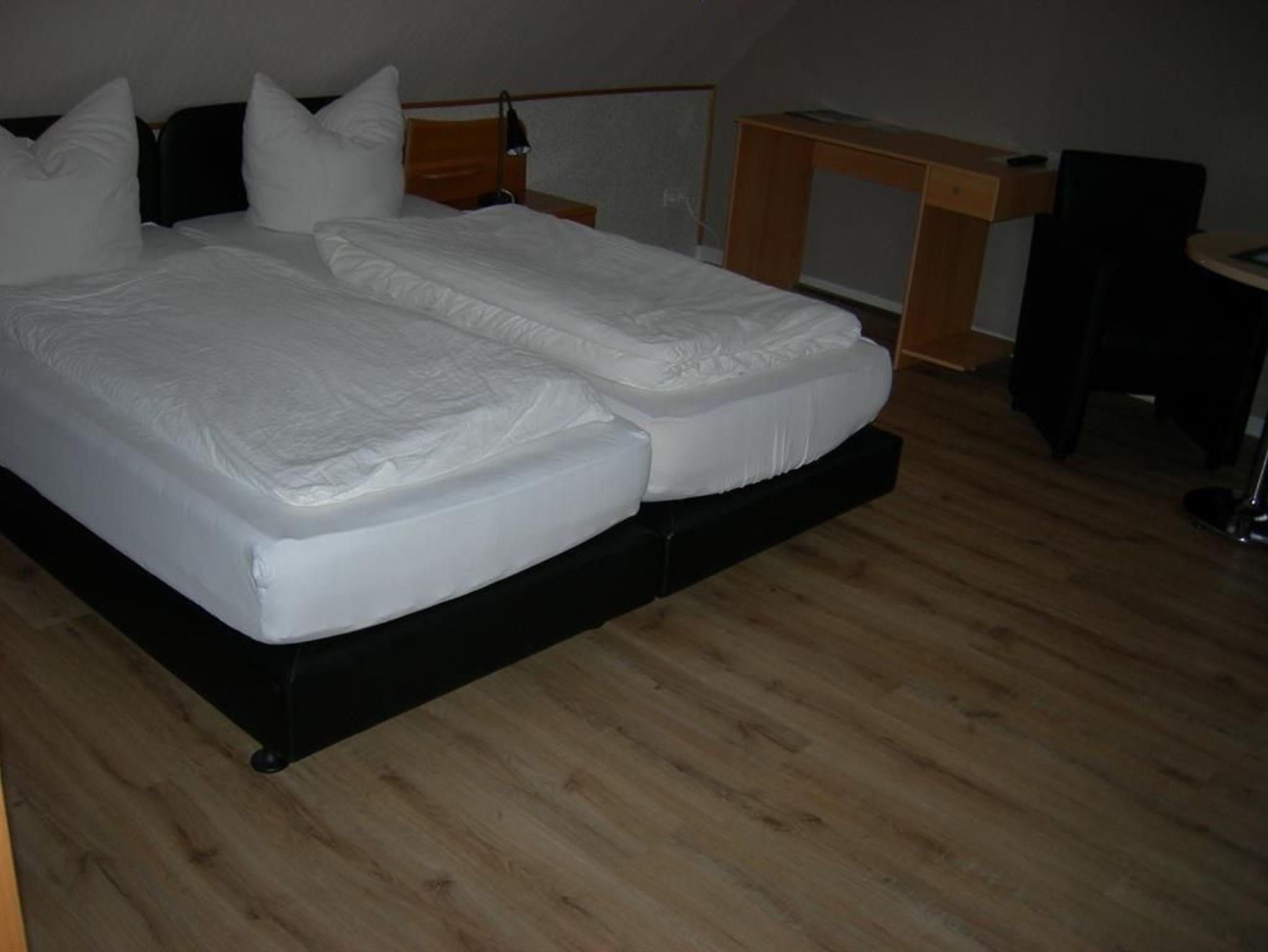 Renovierte Doppelzimmer mit Dusche und WC. Die Zimmer sind ca. 20 qm groß und befinden sich im Obergeschoss. Im Zimmer finden Sie einen Schreibtisch, W-Lan und eine Küchenzeile.