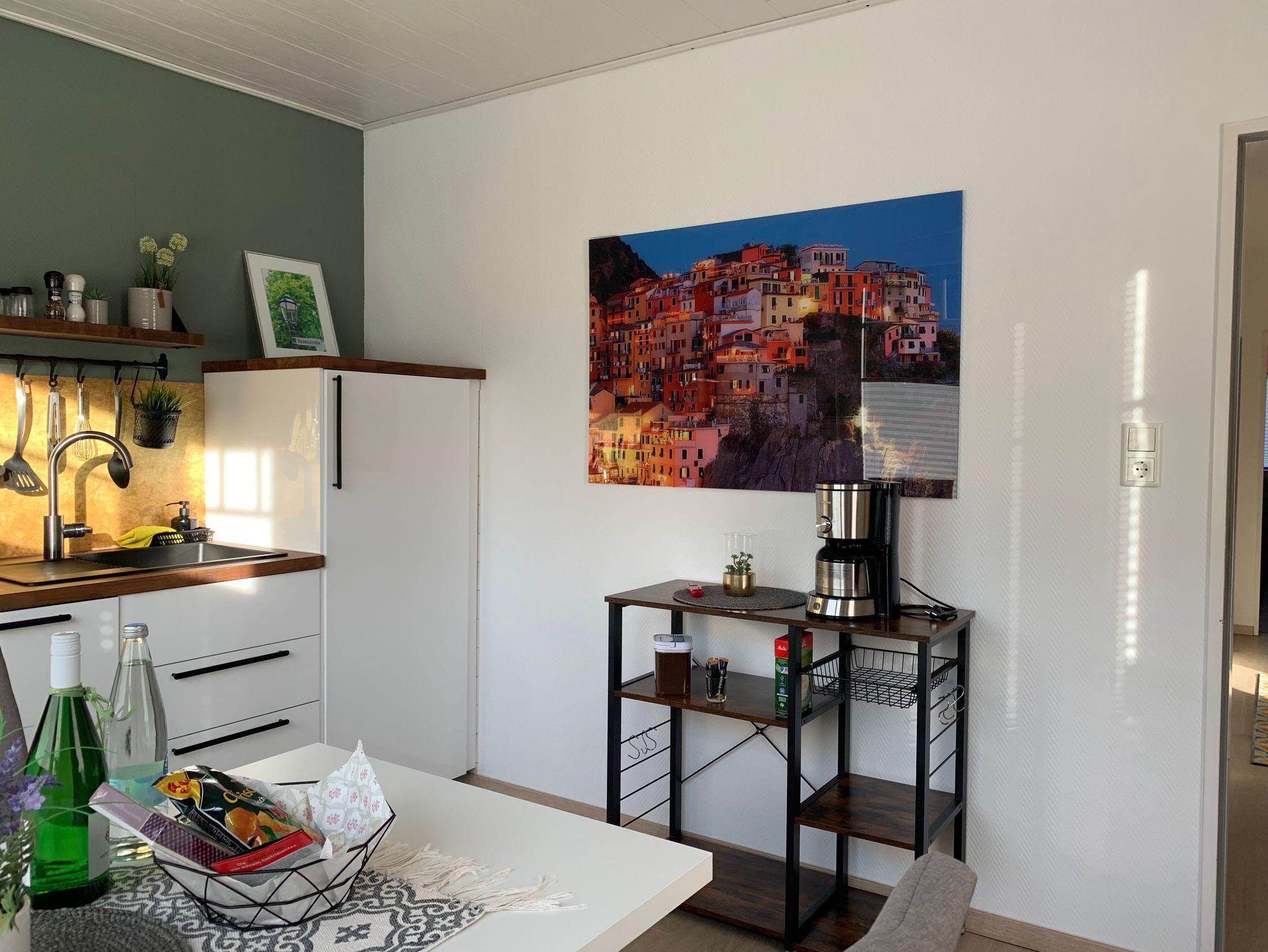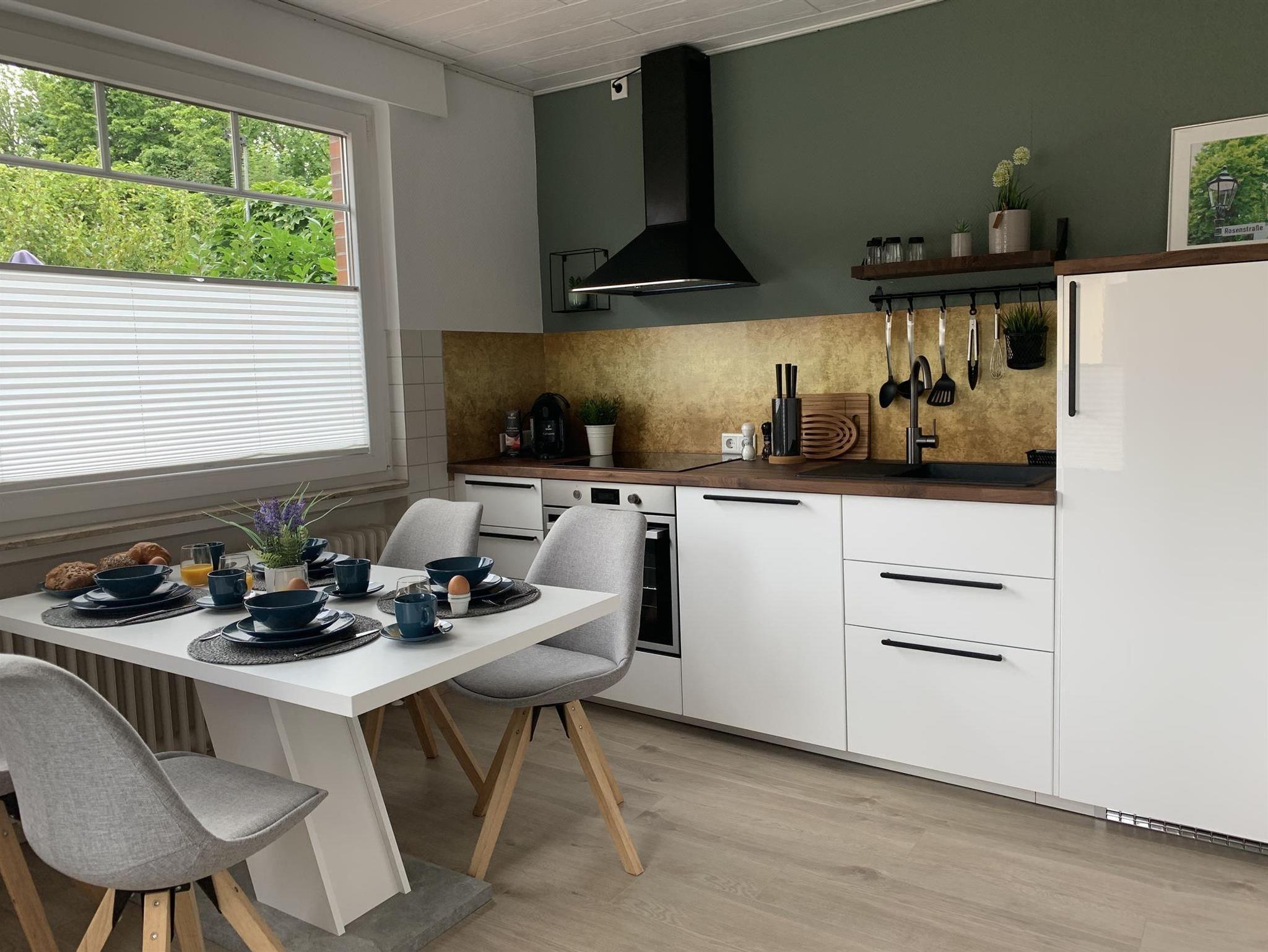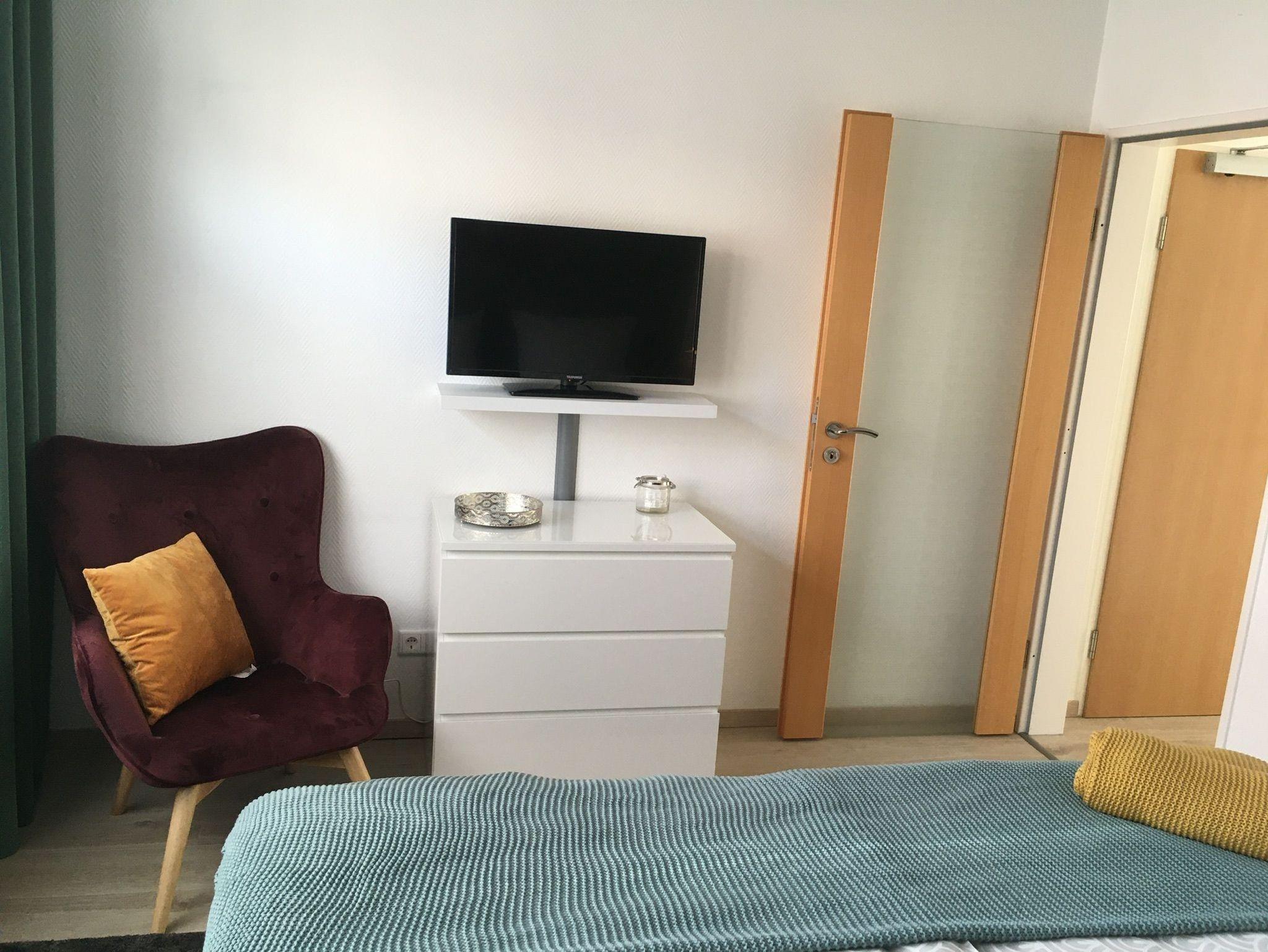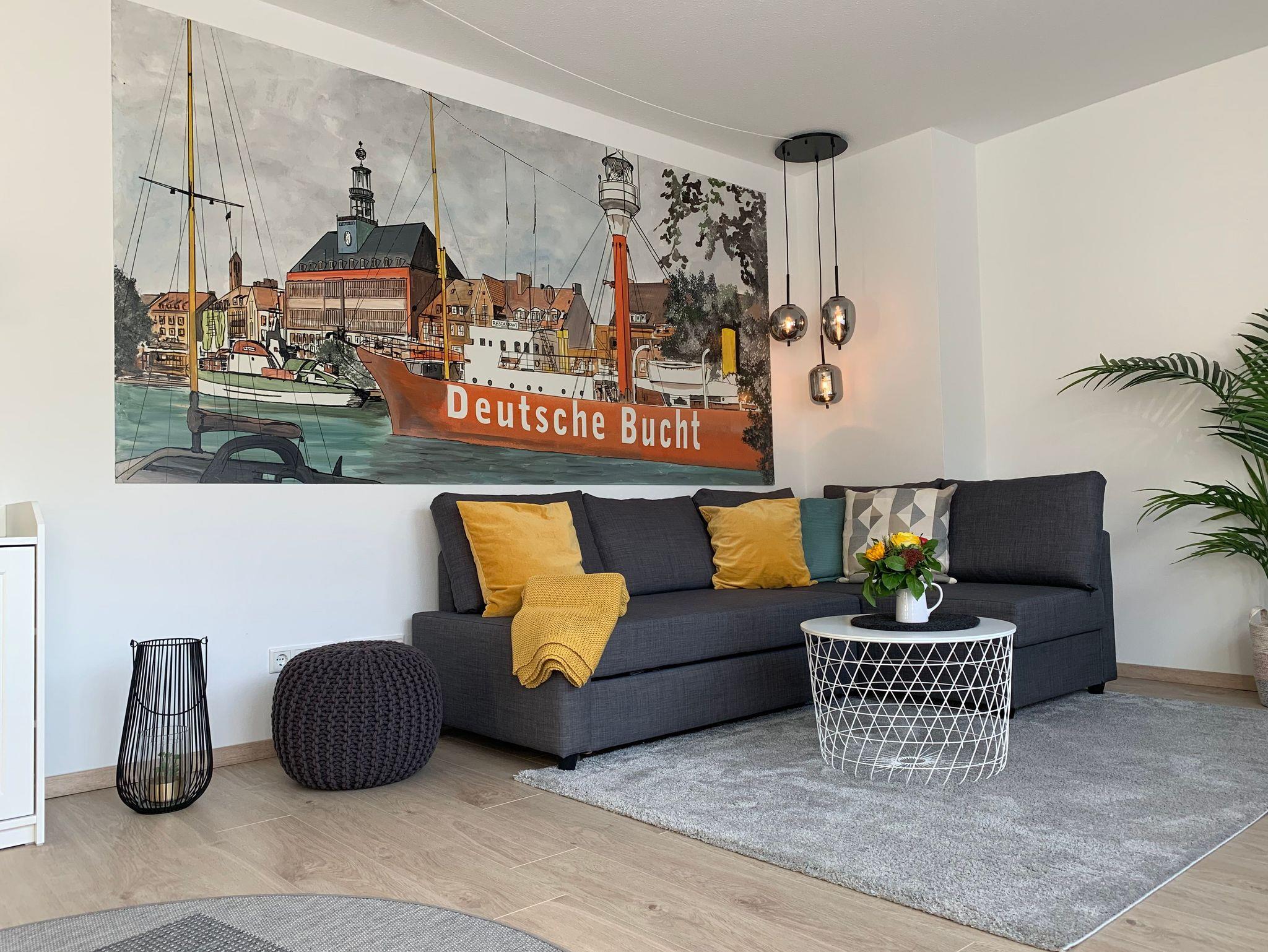 Unser modernes Apartement befindet sich im Zentrum von Emden im Stadtteil Klein-Faldern und bietet auf ca. 60 qm höchsten Wohnkomfort. Ein komfortables Boxspringbett sowie eine voll ausgestattete Küche gehören ebenso wie eine südwestlich gelegene Sonnenterrasse mit Sitzgelegenheit dazu. Zusätzlich gehören W-Lan, Waschmaschine, Trockner und zwei Fernseher zur Ausstattung des gemütlichen Apartements. Das Sofa im Wohnzimmer kann optional auch als Schlafsofa genutzt werden. Das Badezimmer ist mit Dusche, Waschtisch und Toilette ausgestattet. Bettwäsche und Handtücher werden zur Verfügung gestellt. Öffentliche Parkplätze befinden sich direkt am Haus. Eine Garage mit Stromanschluß für E-Bikes, in der Fahrräder sicher verschlossen werden können, ist ebenfalls vorhanden.