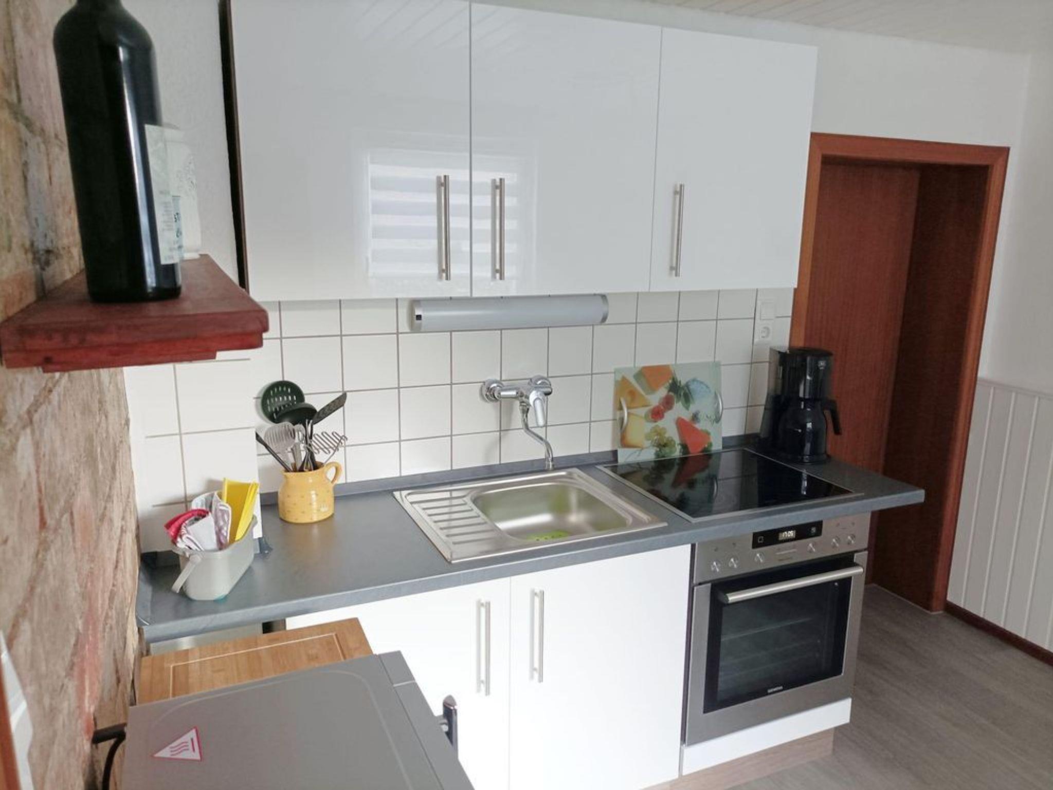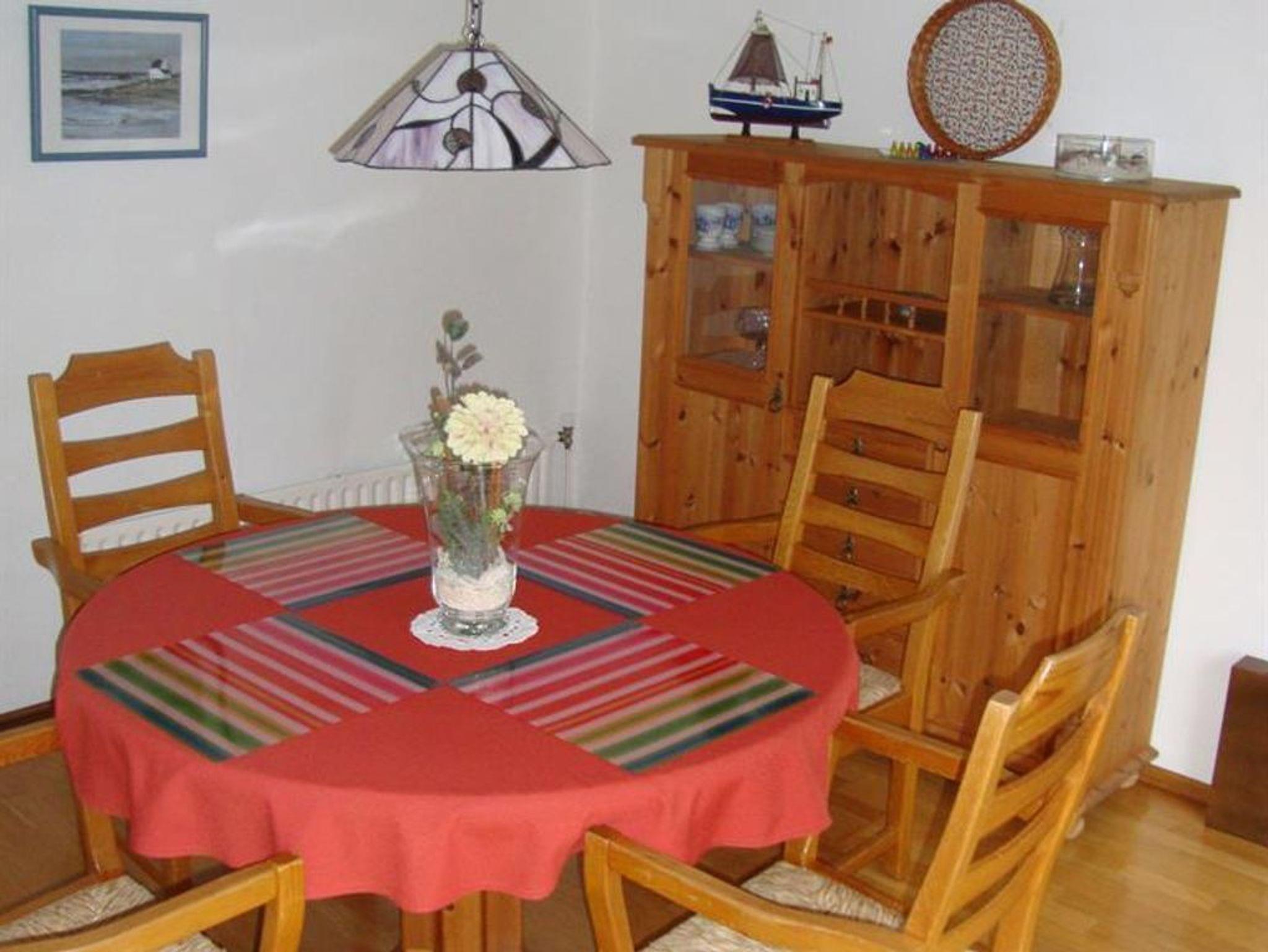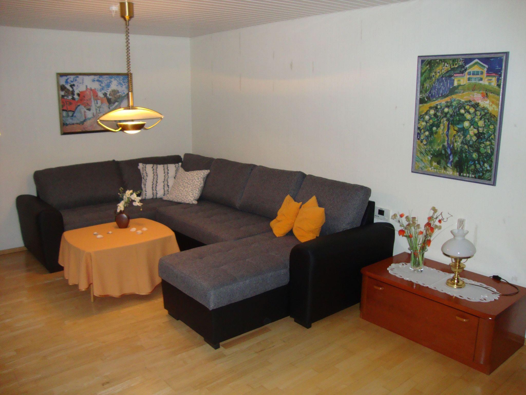 Das 100 qm große Ferienhaus bietet ein großzügiges, helles Wohn-Schlafzimmer mit Schlafcouch mit LCD-TV und DVD-Player. Vollausgestatte Küche mit Essplatz. Sonniges Eßzimmer mit herrlichem Blick in den Garten. Das Badezimmer verfügt über eine große Badewanne mit Duschvorrichtung, sowie ein Waschbecken und WC. Im oberen Bereich des Hauses befinden sich zwei gemütlich eingerichtete Schlafzimmer. Ein Zimmer verfügt über ein Doppelbett und ein Zimmer über zwei Einzelbetten. Ein Kinderhochstuhl und ein Babybett stehen Ihnen zur Verfügung. Alle Zimmer haben einen schönen Blick in den Garten. Waschmaschine auf Anfrage vorhanden.