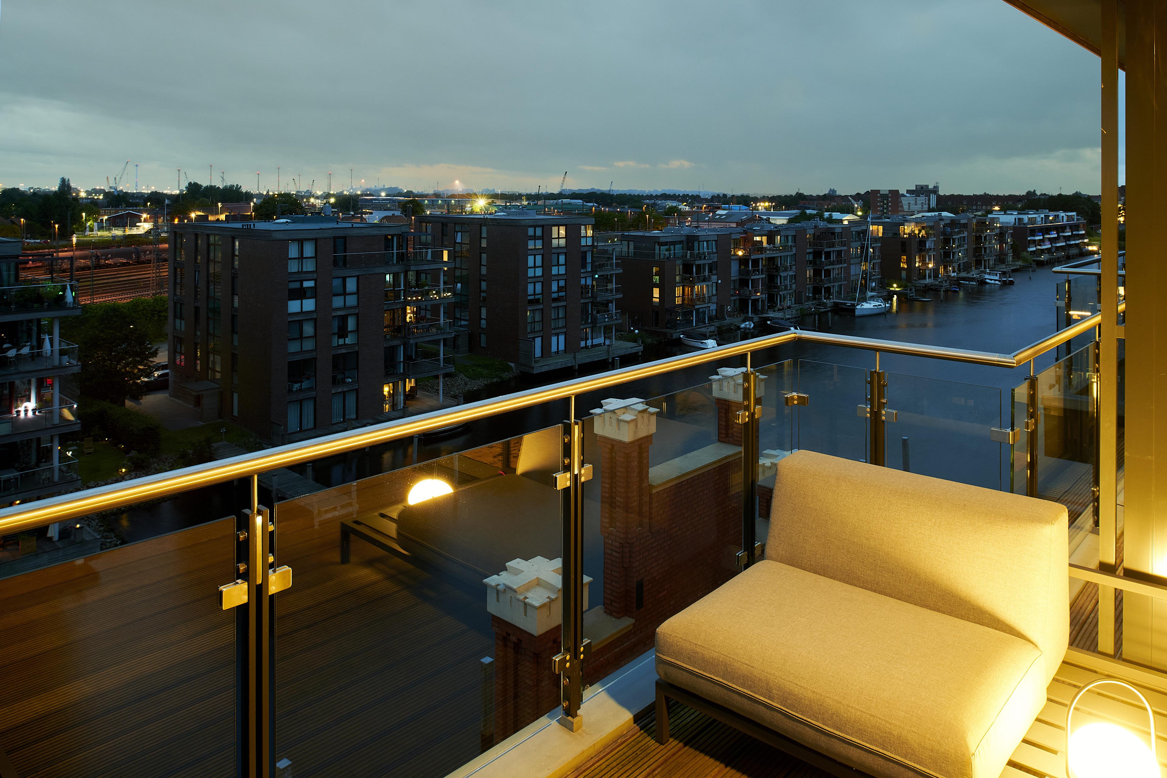 Unser exklusives "Penthouse Speicher 60" bietet auf 120qm Wohnfläche höchsten Wohnkomfort in bester Lage direkt am Neuen Delft in Emden. Große Fensterfronten eröffnen einen atemberaubenden Blick über die Stadt und die großzügige Dachterrasse lädt zu entspannten Stunden unter freiem Himmel ein. Das Herzstück des Penthouses ist das luxuriöse Schlafzimmer mit einem angrenzenden, eleganten Badezimmer en Suite. Hier erwartet Sie ein besonderes Highlight: eine eigene KLAFS Sauna, die Ihnen eine Oase der Entspannung und Erholung bietet. Zusätzlich sorgt ein separates Gäste-WC für Komfort. Das stilvoll eingerichtete Büro bietet nicht nur einen ruhigen Arbeitsplatz mit Weitsicht, sondern lässt sich dank der integrierten Schlafcouch auch ideal als weiteres Schlafzimmer für den Urlaub mit der Familie oder Freunden nutzen. Das gesamte Penthouse wurde äußerst exklusiv, mit viel Liebe zum Detail und Designerelementen ausgestattet. Die zentrale Lage direkt am Neuen Delft verbindet Urbanität mit Exklusivität. Zahlreiche Cafés, Restaurants und Einkaufsmöglichkeiten befinden sich in unmittelbarer Nähe, während das Penthouse selbst eine ruhige und private Atmosphäre gewährleistet. Hier wohnen Sie mitten im Geschehen und genießen dennoch eine erholsame Ruheoase hoch über den Dächern der Stadt. Ein eigener PKW-Stellplatz, sowie ein Aufzug gehört selbstverständlich ebenfalls zur AusstattungSollten Sie mit einem E-Auto anreisen, verfügt das Objekt auch über eine Ladesäule.