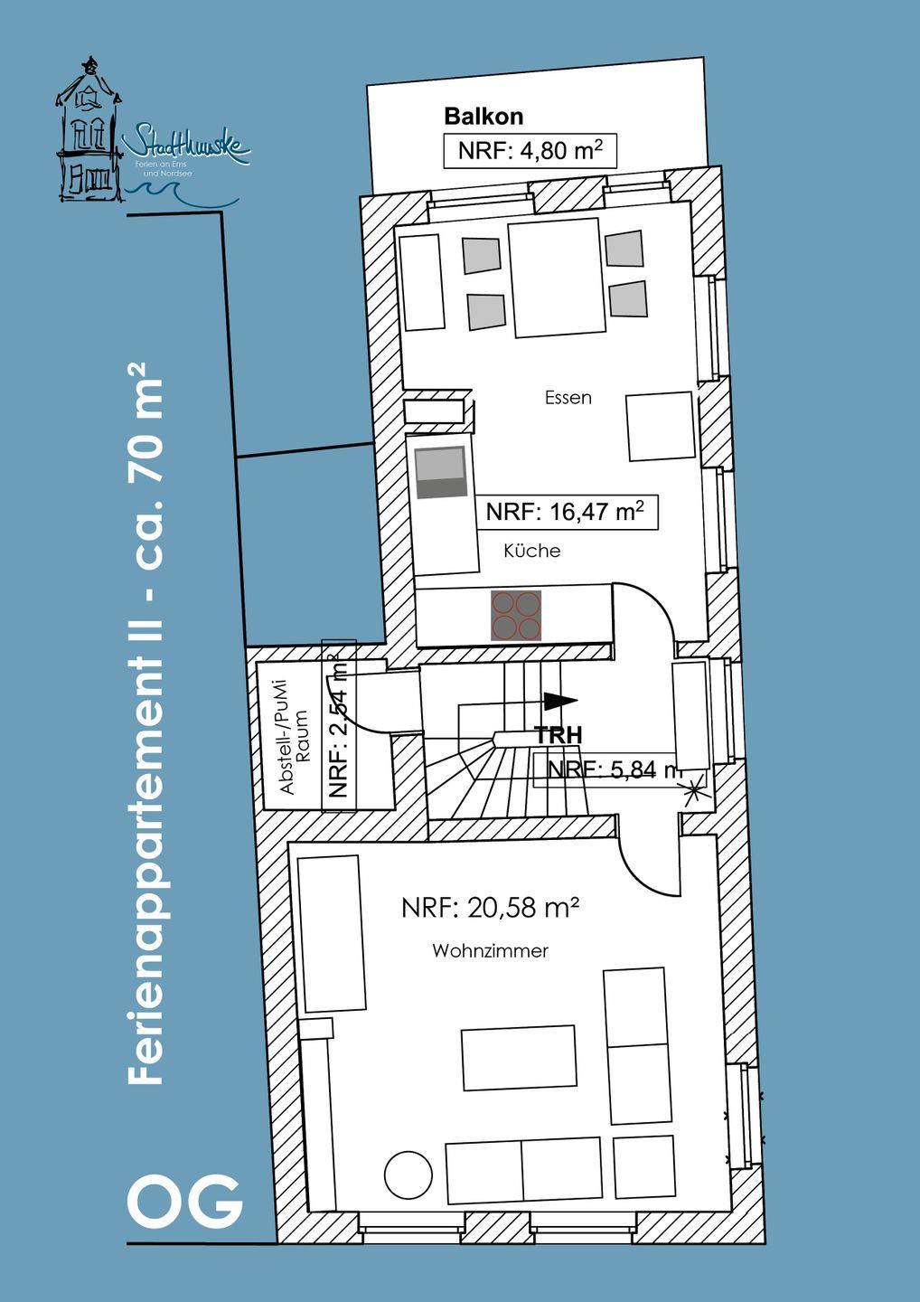 Auf zwei Etagen finden die Gäste die Ferienwohnung "Stadthuuske boven".