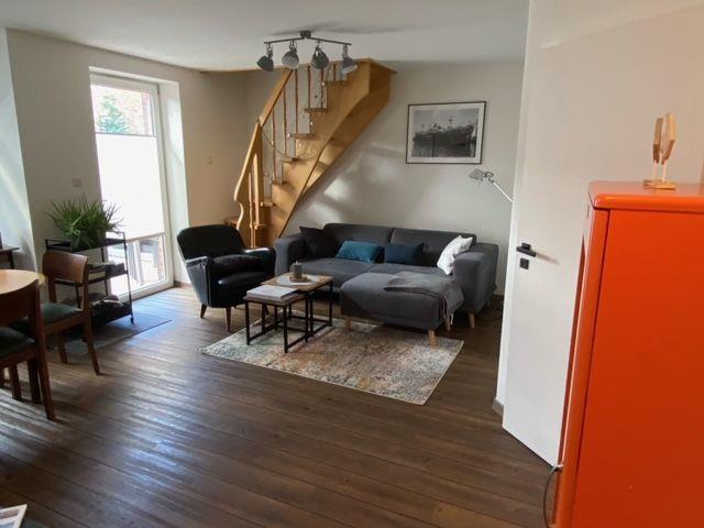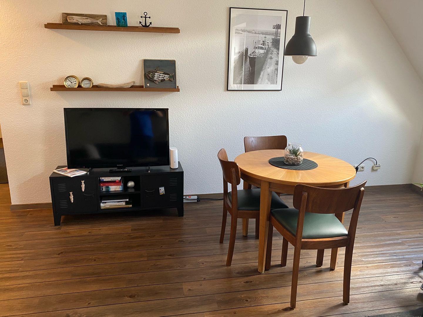 Modernes, helles Business-Apartment mit Balkon im Zentrum von Emden, ideal für entspannte Arbeitstage und Stadtbesuche.