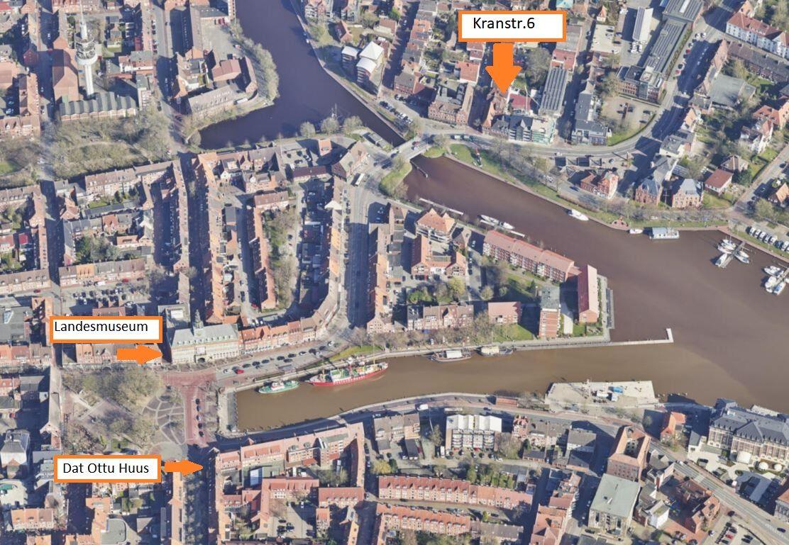 Die Sehenswürdigkeiten von Emden, wie z.B. das Ostfriesische Landesmuseum Emden, die Kunsthalle Emden, Dat Otto Huus, die Pelzerhäuser und der Ratsdelft, mit seinen historischen Schiffen, sind bequem zu Fuß zu erreichen.