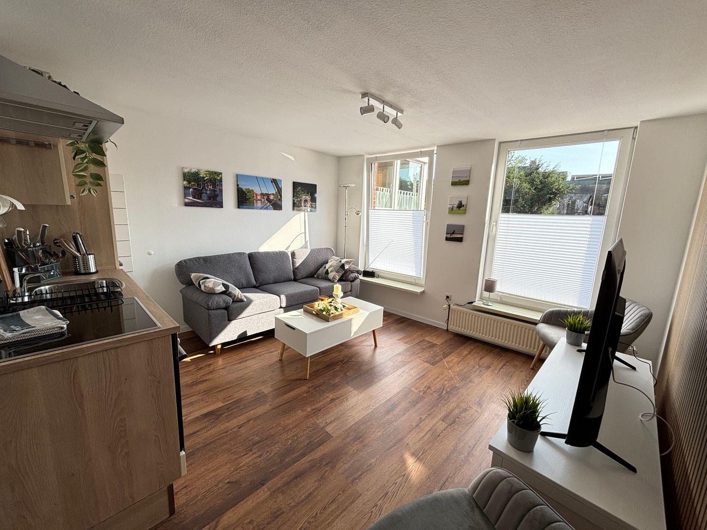 Renovierte, helle Ferienwohnung in ruhiger Zentrallage nahe Falderndelft in Emden, ideal für entspannte Spaziergänge und Stadterkundungen.
